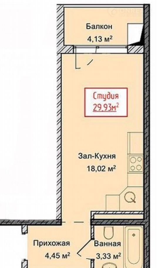 Общая площадь 29.9 м2
