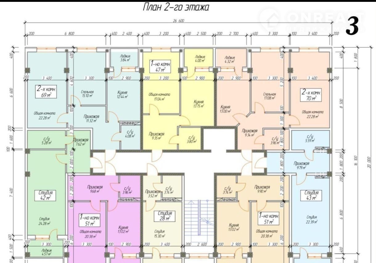 Общая площадь 52 м2