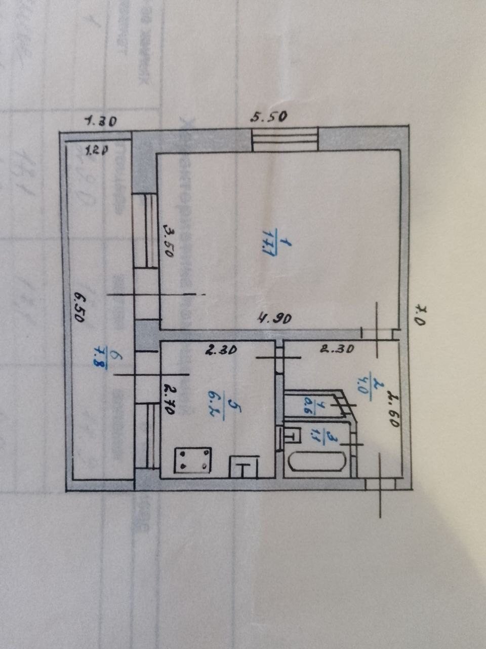 Общая площадь 36.8 м2