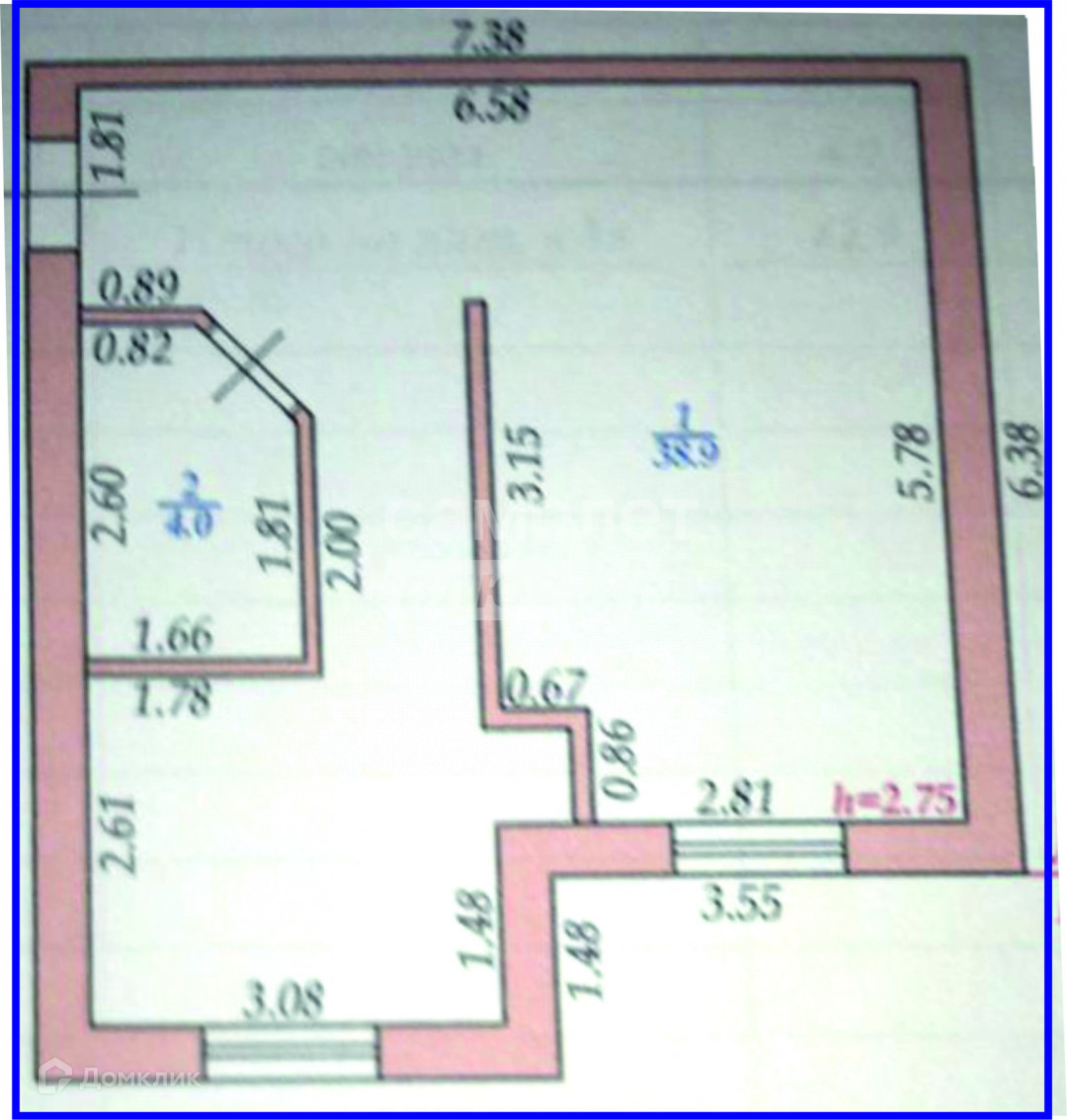 Жилая площадь 38.9 м2