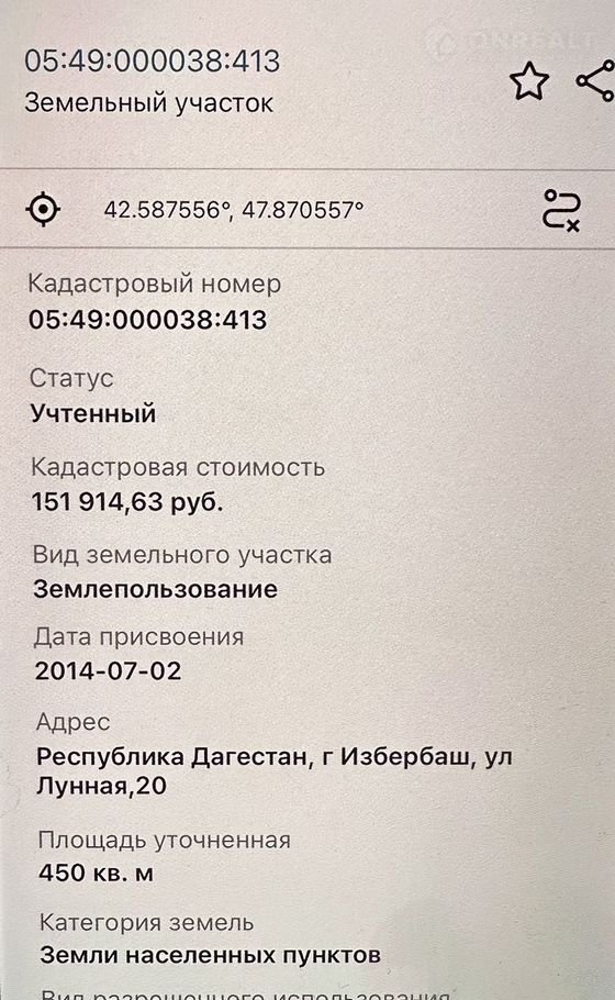 Участок под ИЖС, 4.5 сот. на продажу в Избербаше, Рассветная улица