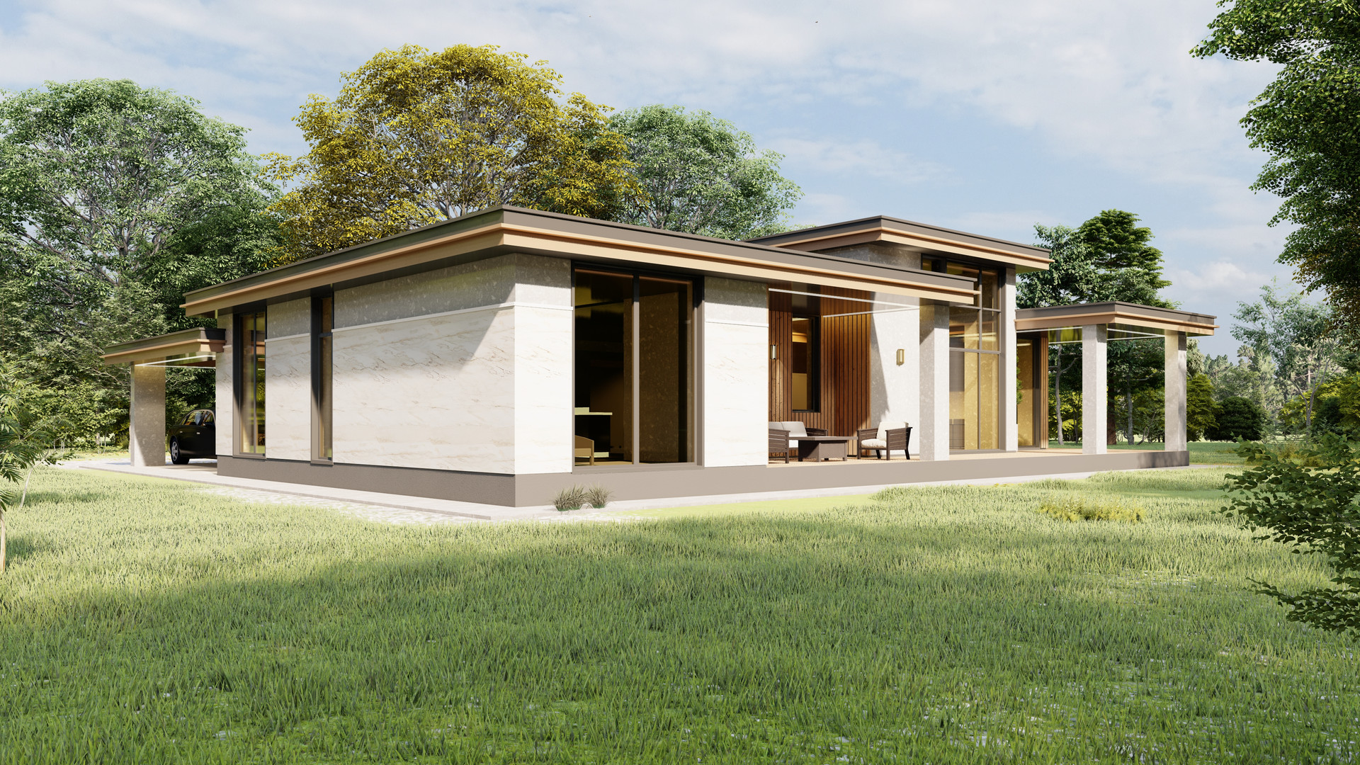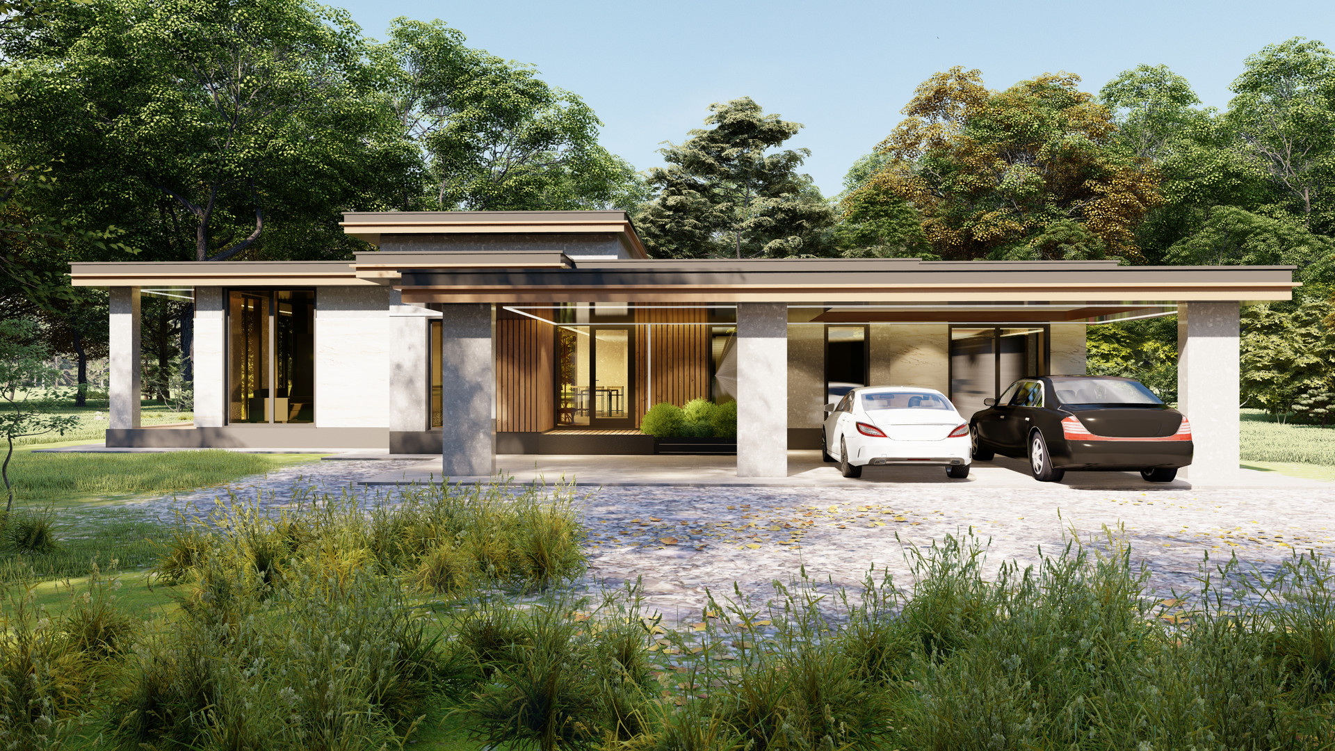 Навес под 2 авто,терраса, 2 санузла, гардероб