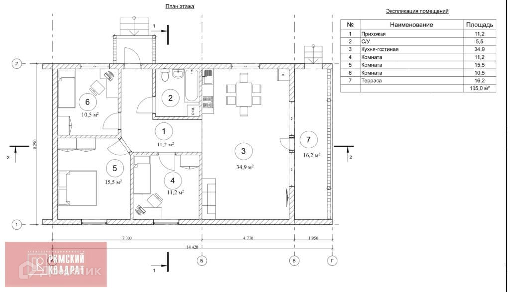 Общая площадь 105 м2