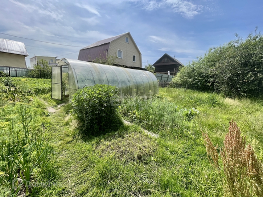 Есть хоз.постройки, гараж, баня с печным отоплением, теплица, забор.