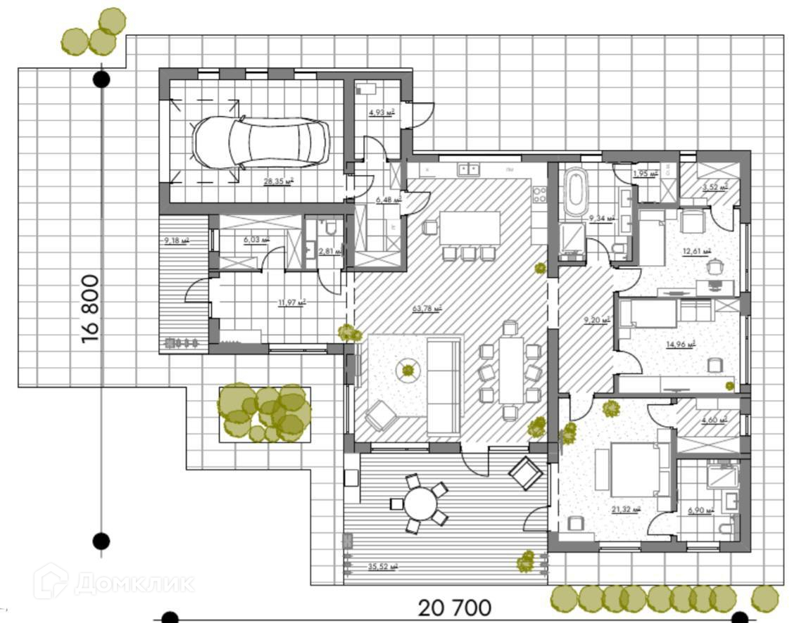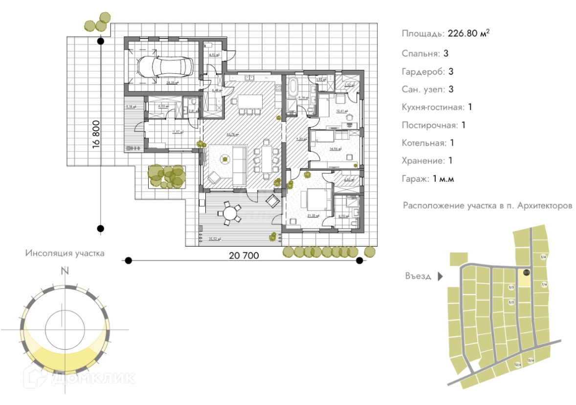 Хотите жить в самом престижном коттеджном поселке города Ижевска? Всего 15 минут по Якшур-Бодьинскому тракту от центра города по ровной и живописной дороге.Дом расположен в клубном поселке Архитекторов. 54 участка с домами в едином стиле. Закрытая территория, круглосуточная охрана, освещение каждого участка, скрытые подземные коммуникации электричества,  брусчатка по всем дорожкам, собственный пруд с зонами для отдыха.СПЕЦИАЛЬНО ДЛЯ ВАС!Одноэтажный дом с современной плоской кровлей, премиальным панорамным остеклением, уникальным фасадом, террасой и гаражом.Конструктив и отделка дома:•фундамент - монолитная плита (по результатам геологии)•газоблок 400•вентилируемый фасад с утеплителем выполнен из широкоформатного керамогранита, планкена (лиственница) и композитных материалов скрытым креплением•окна из алюминиевого профиля Alutech с мультифункциональным стеклом сохраняющее комфортную температуру•кровля дома плоская с использование пвх мембраны – технологичное и современное решение, позволяющее избежать необходимость обслуживать кровлю и следить за снегом•выполнена предчистовая отделка - полностью разведена электрика, теплые полы, стены подготовлены под чистовую отделкуУДАЧНОЕ ПЛАНИРОВОЧНОЕ РЕШЕНИЕ- гостевая зона разделена с приватной зоной.При входе в дом: холл 12м, гардероб 6м и гостевой санузел 3м.Гостевая зона: просторная кухня гостиная 64м со вторым светом и высотой потолка 4,7м с выходом на террасу 35м.Из кухни предусмотрен выход в котельную, зону хранения, а также есть выход  в гараж 28м.Приватная зона состоит из трех спальных комнат, одна из которых имеет собственный выход на террасу, ванную комнату с панорамным остеклением и гардероб.Также в хозяйской зоне дома предусмотрен общий санузел 9м с выходом в постирочную 2м.Участок 14.7 соток правильной прямоугольной формы - ровный и без уклонов. Дом установлен согласно движения солнца, на террасе и в гостиной южная  сторона, спальная зона расположена на восток. ЭКСКЛЮЗИВНОЕ предложение на рынке.Не упустите свой шанс насладиться непревзойденным уровнем жизни!Такой дом нужно смотреть! Покажем в любое удобное для Вас время.