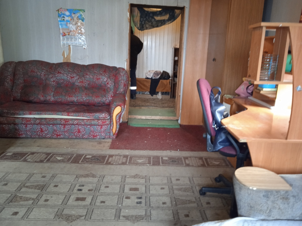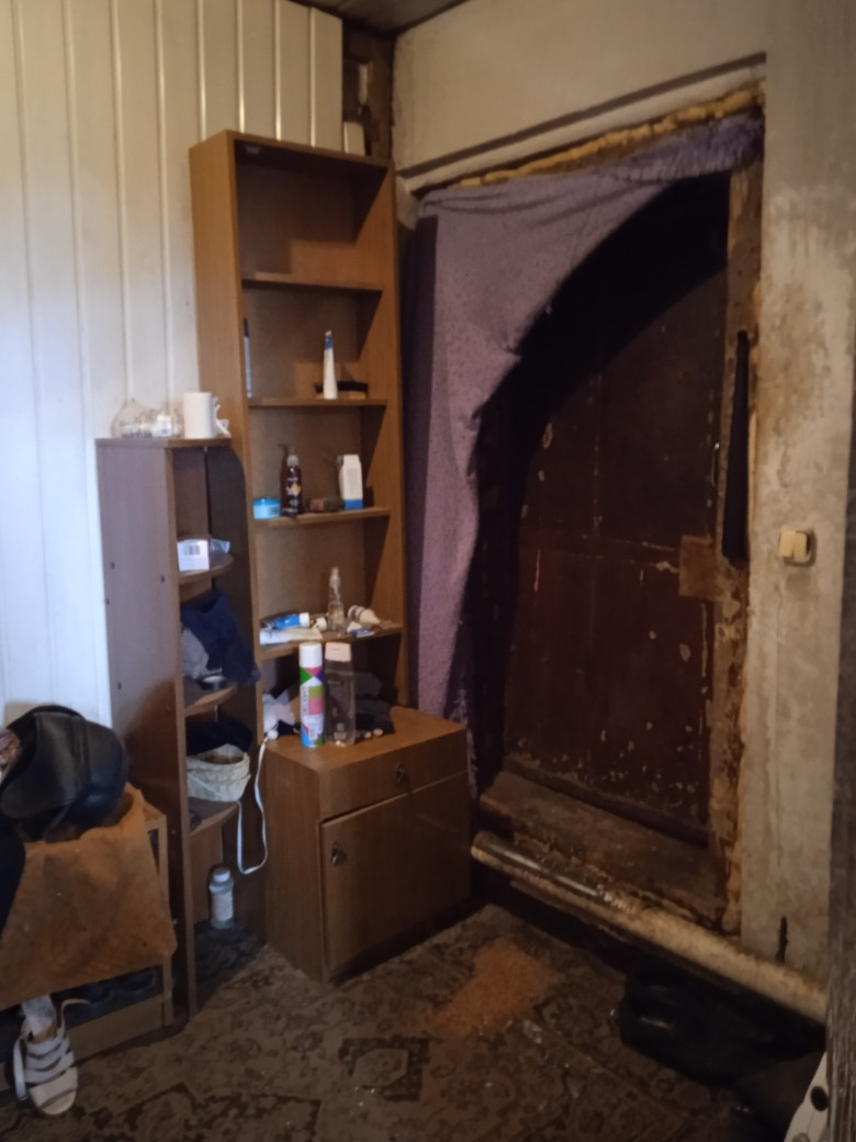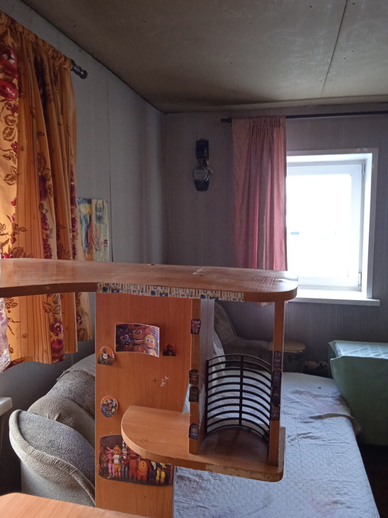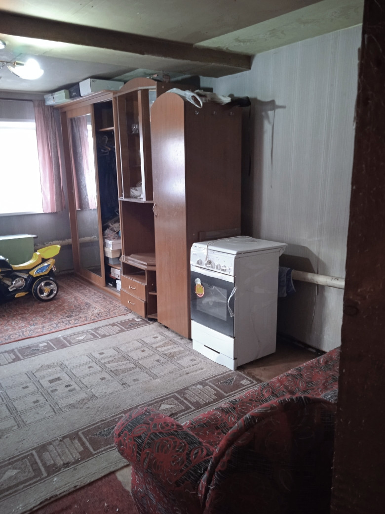 Жилой, не большой, но крепкий дом из бревна, с при строем кухней и летней веранды, жилой площади 18 м2 . Входная массивная деревянная дверь .