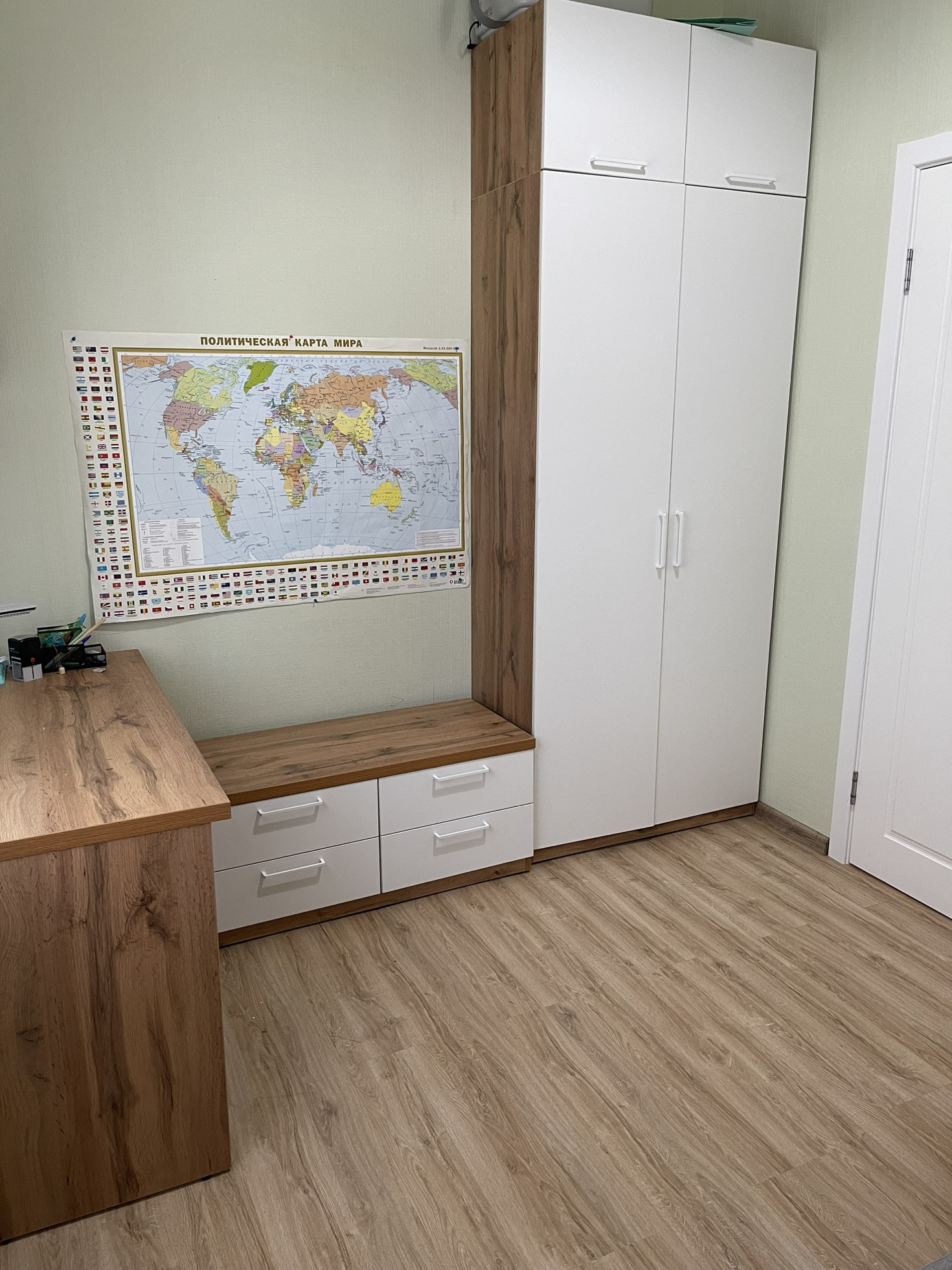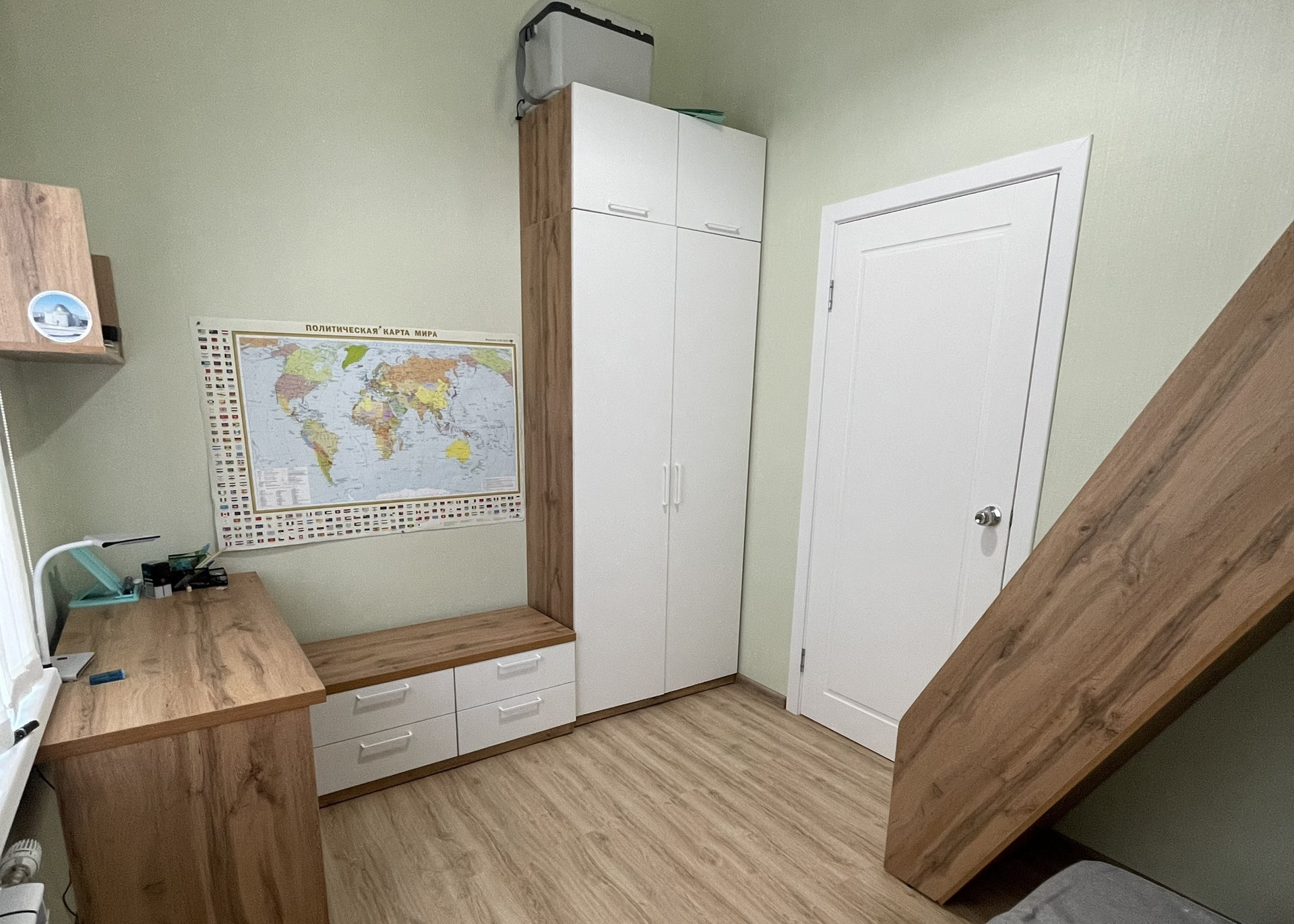 одна из комнат двухуровневая с встроенной кроватью- трансформером.