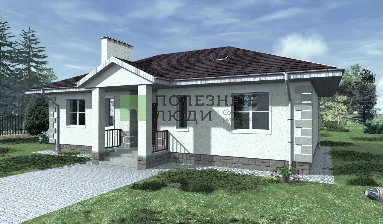 В доме три спальни, просторная кухня-гостиная.