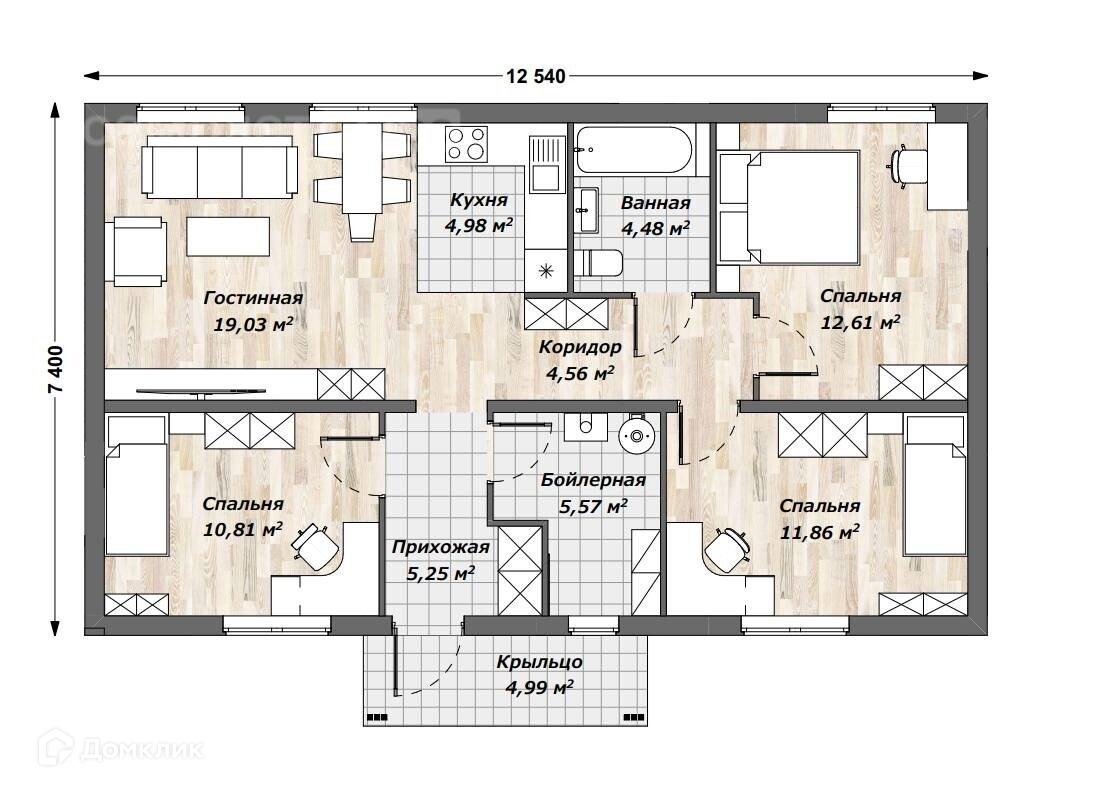 - Просторная кухня-гостиная, три спальни, котельная, большой санузел.