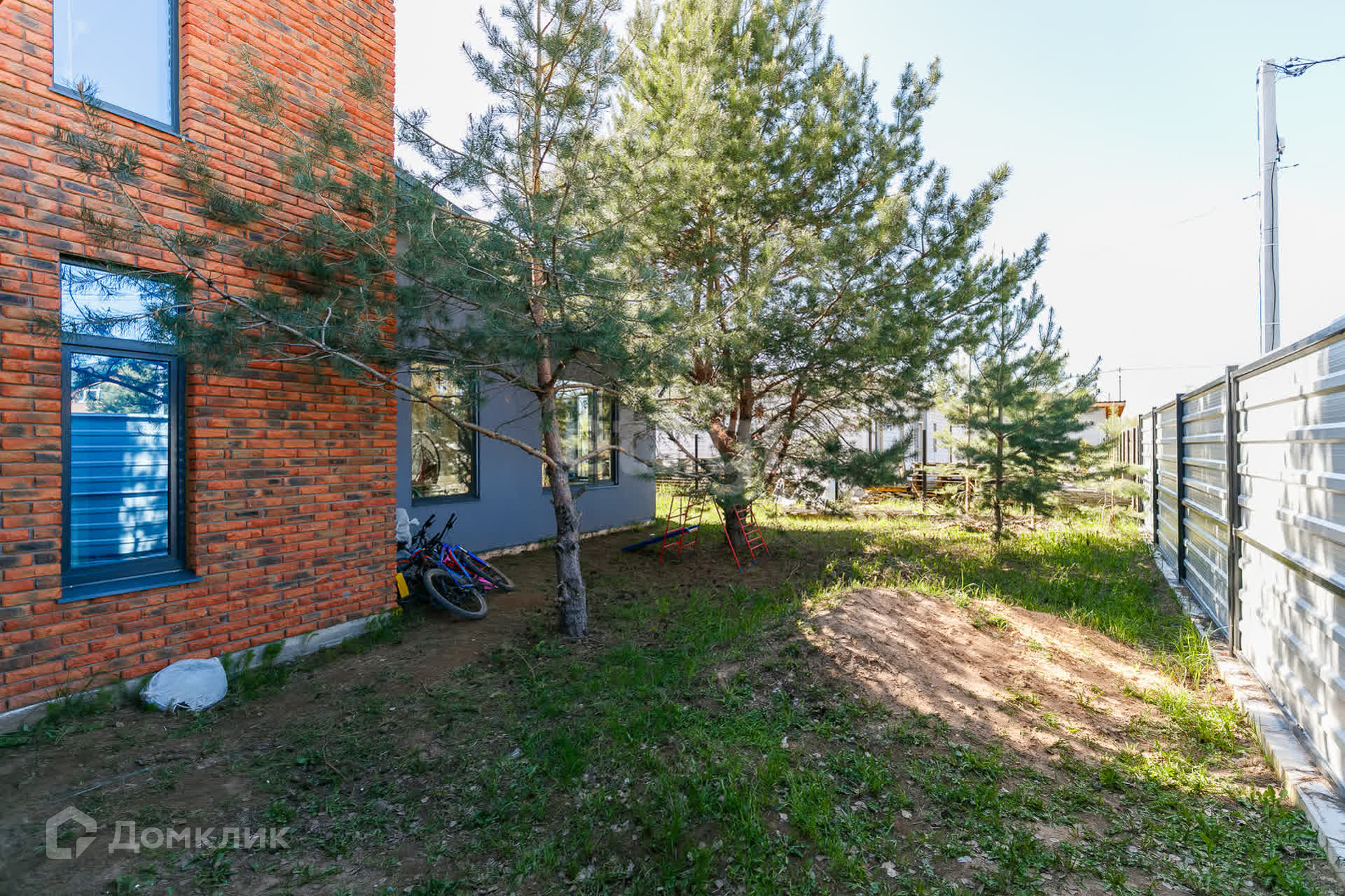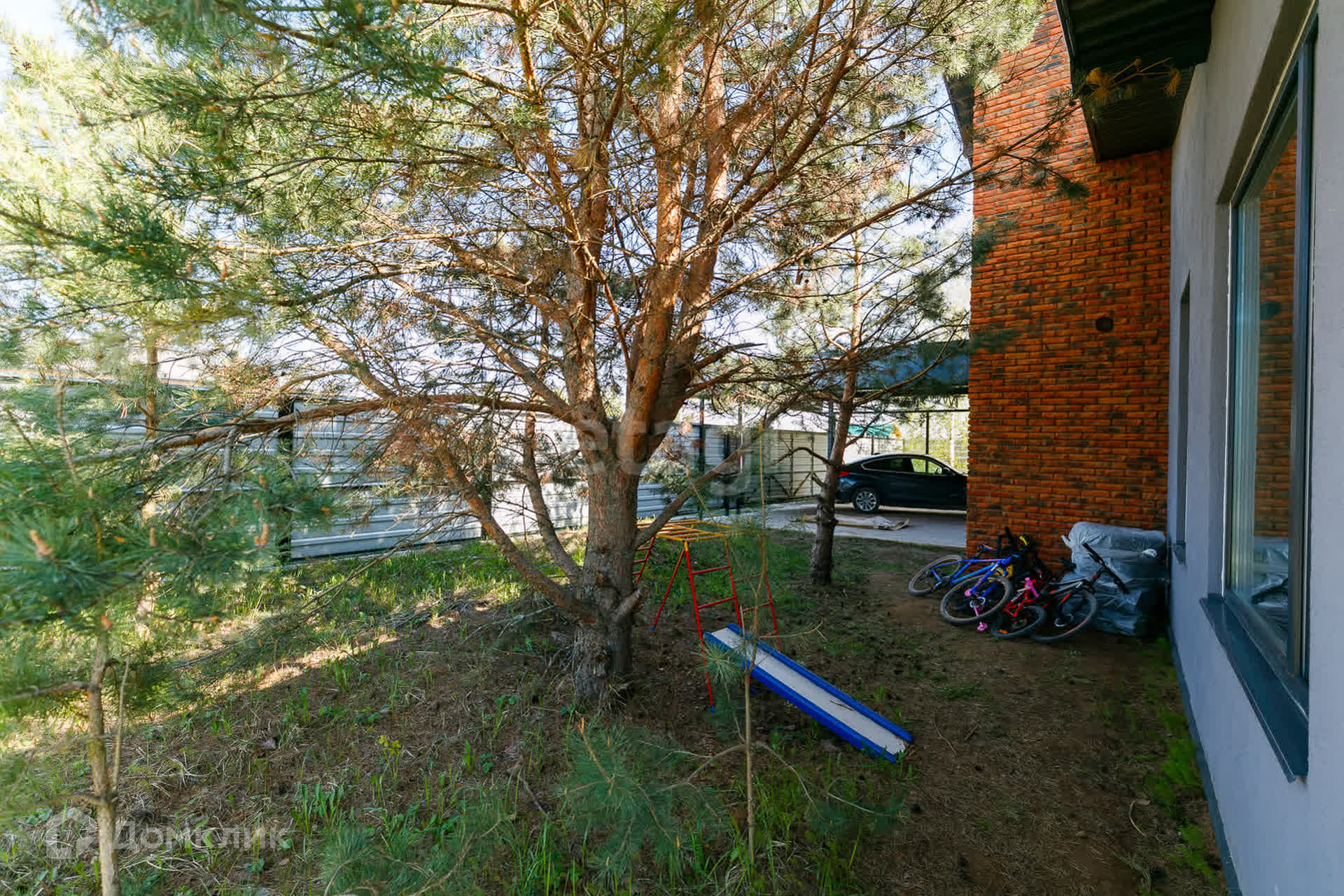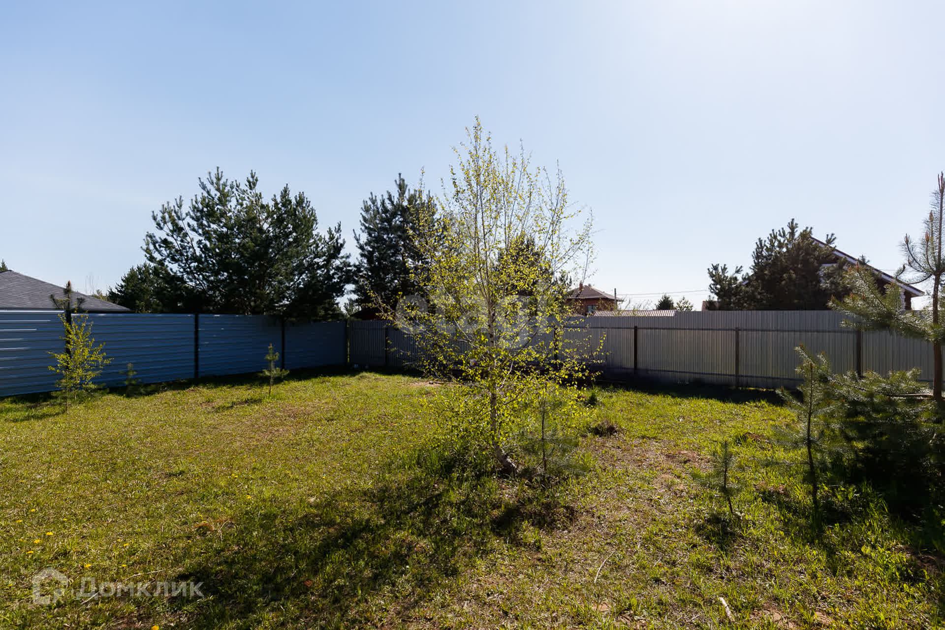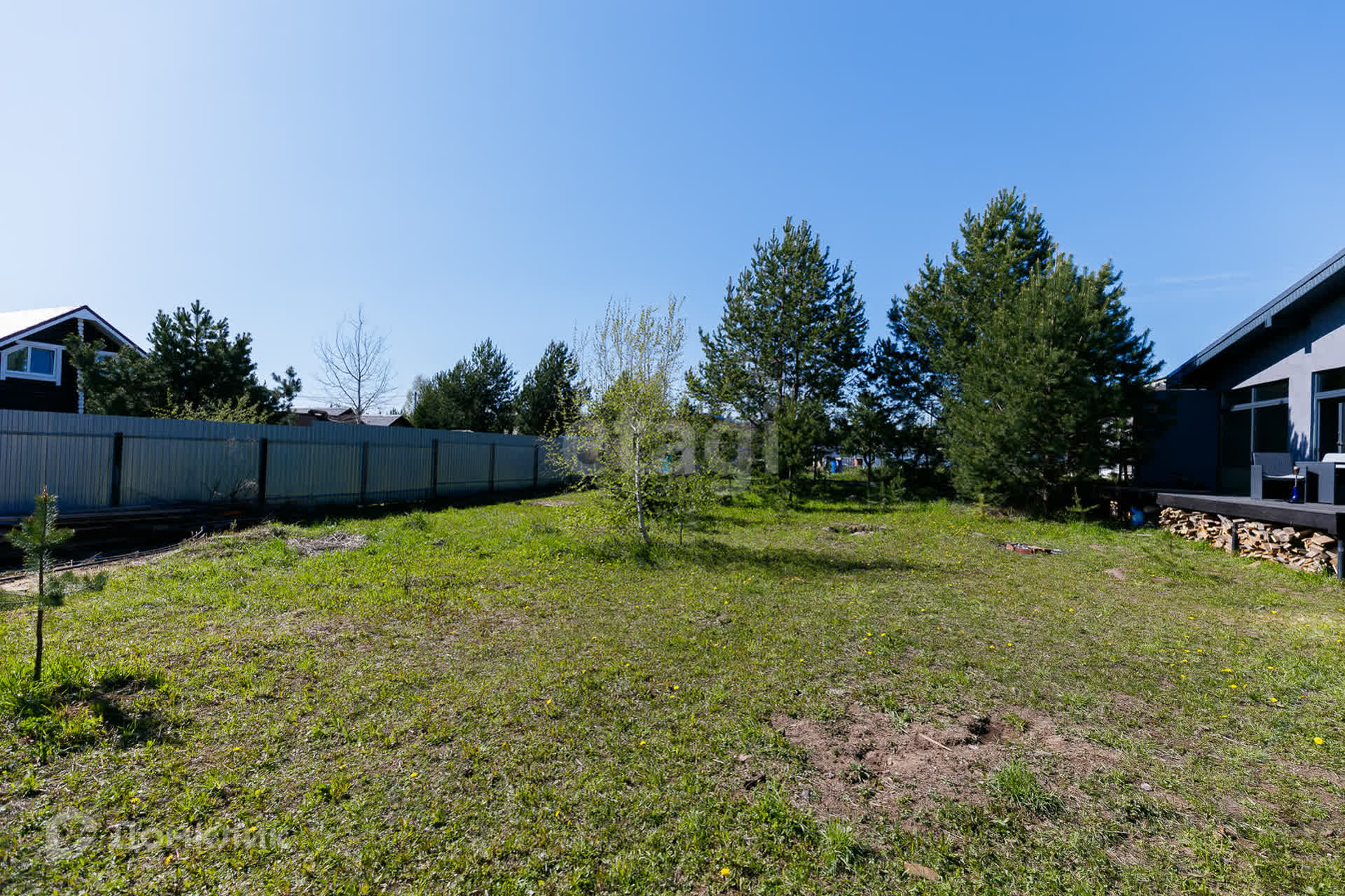 На участке стоят сосны, что добавляет шарм и эксклюзивность земле.