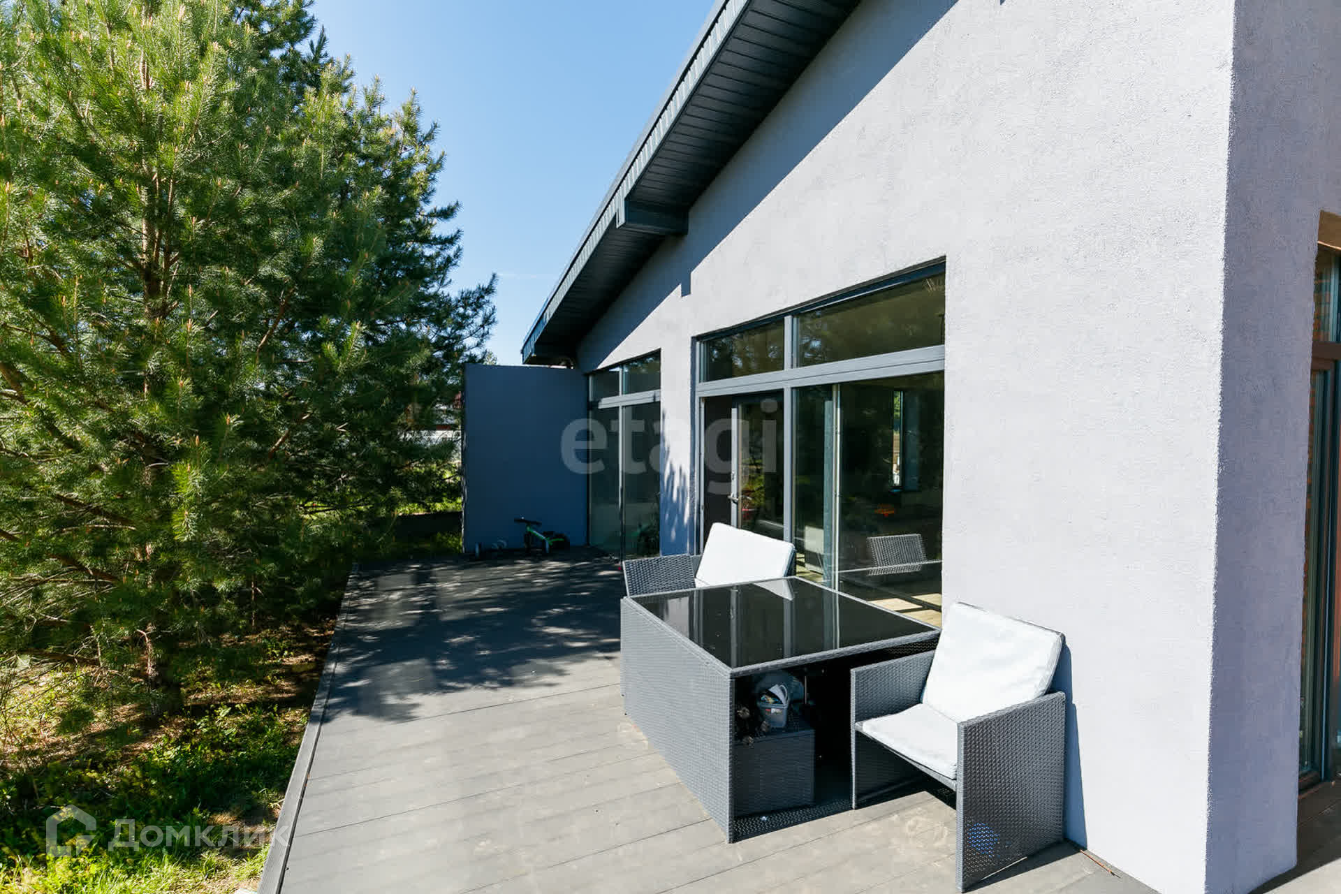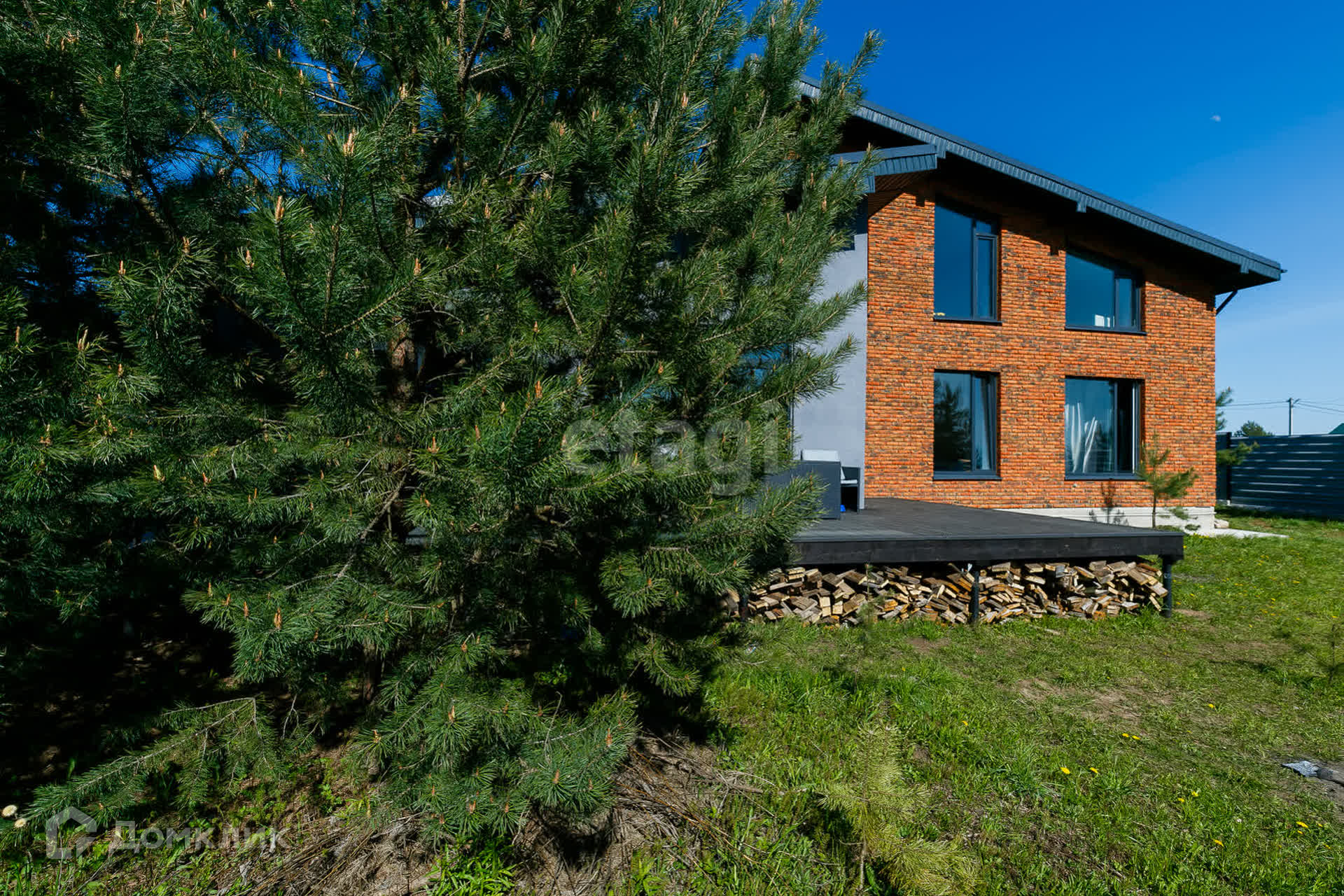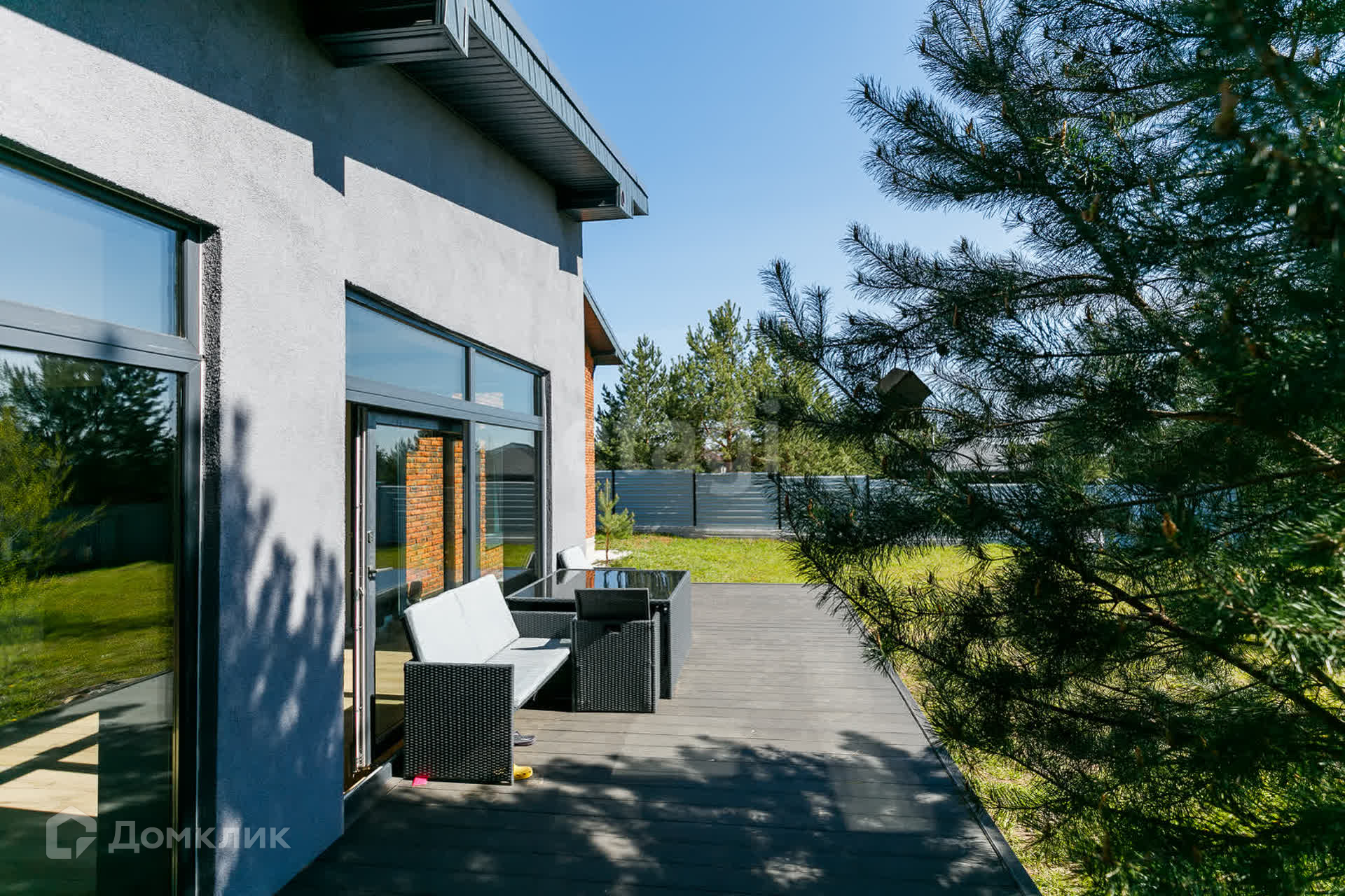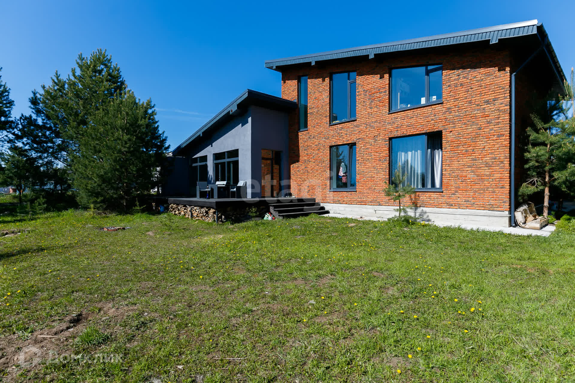 На участке стоят сосны, что добавляет шарм и эксклюзивность земле.