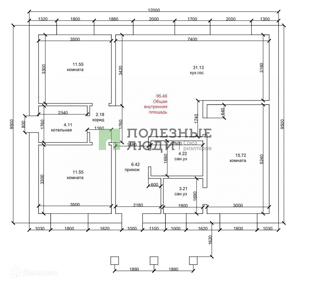 - Площадь 100кв.м