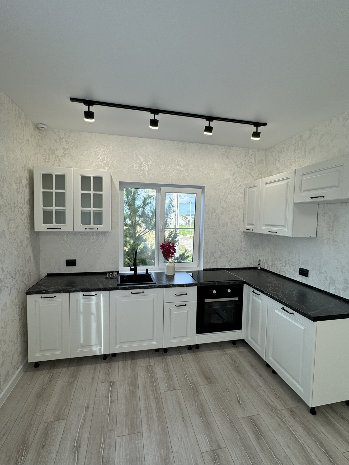 - встроенная кухня со в ей бытовой техникой