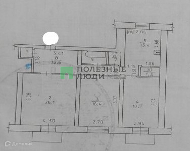 Жилая площадь 26.7 м2