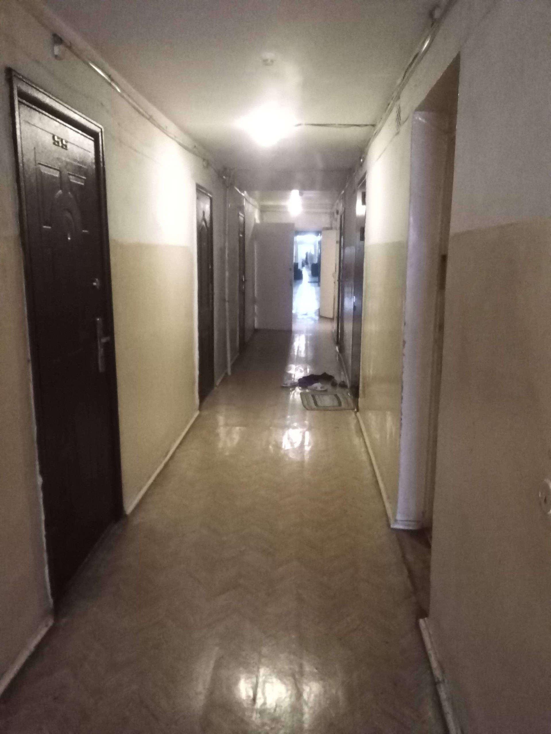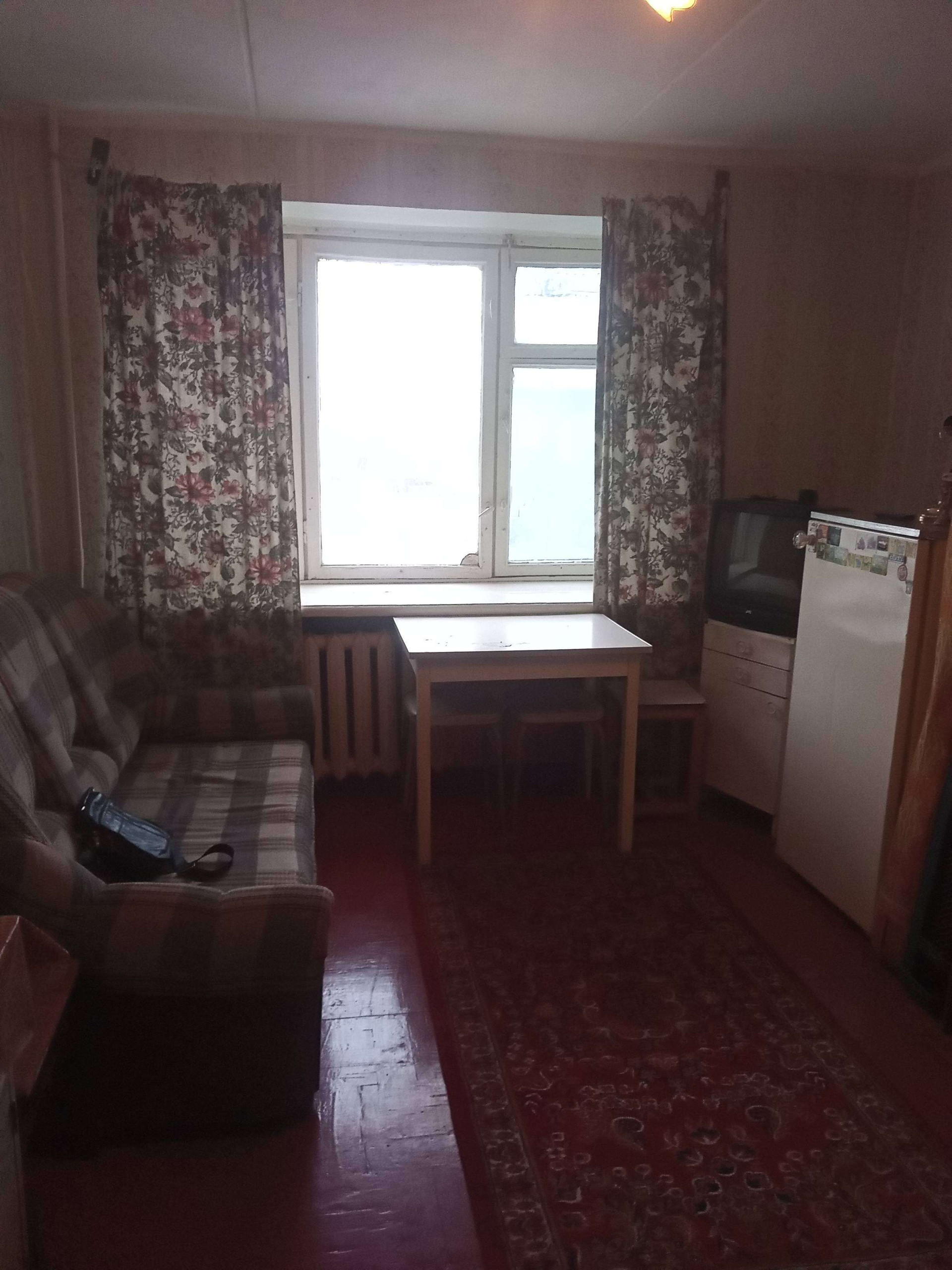 Риэлторов просьба не беспокоить, общежитие коридорного типа, туалет на этаже, душ внизу, рядом остановка общественного транспорта, на входе консьерж, кухня на этаже, в комнате есть все необходимая мебель, тв, холодильник, все остаётся.