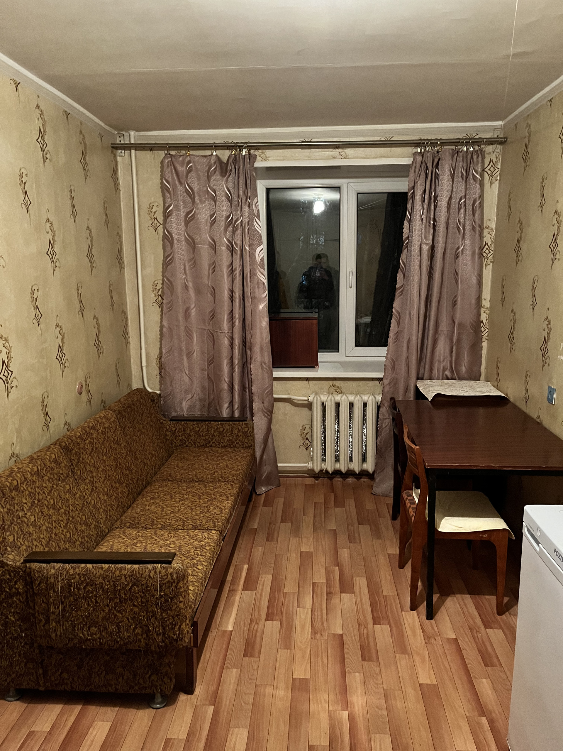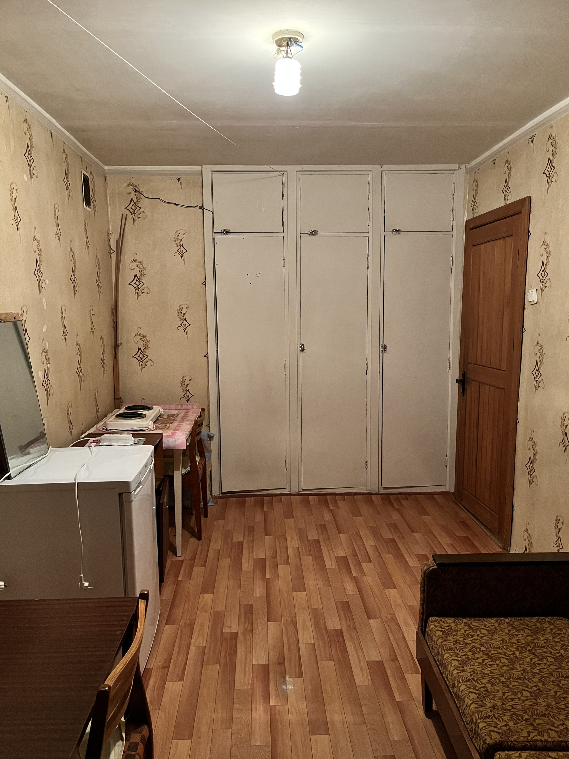Новому собственнику достаётся вся мебель: холодильник,диван,встроенный шкаф,электроплита.