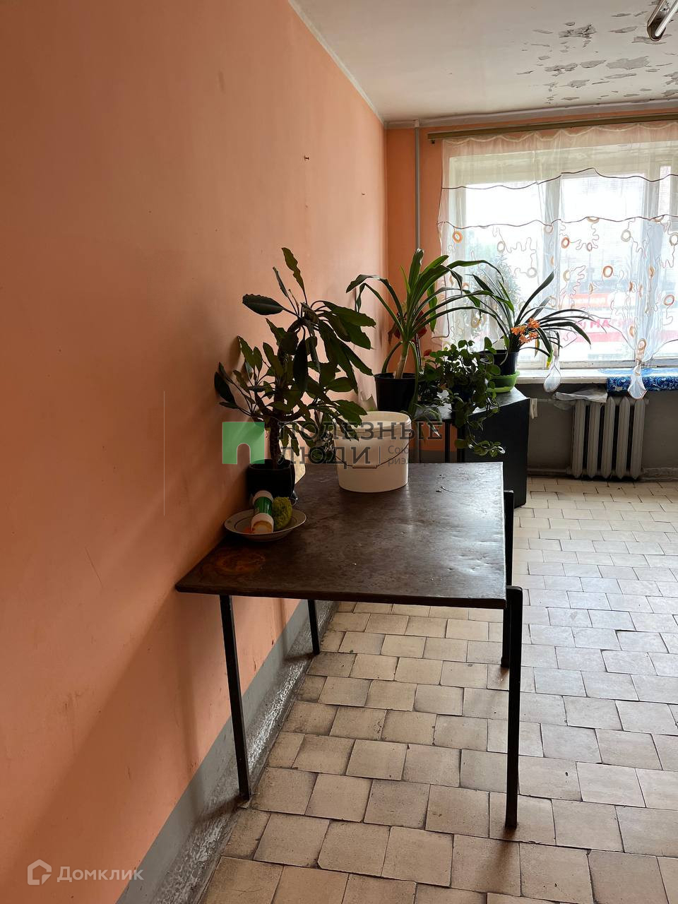 Комната на среднем этаже, окно заменено на пластиковое.