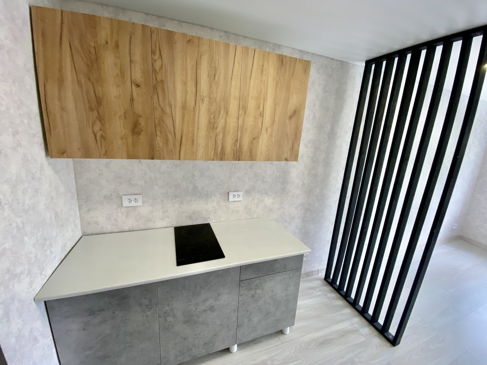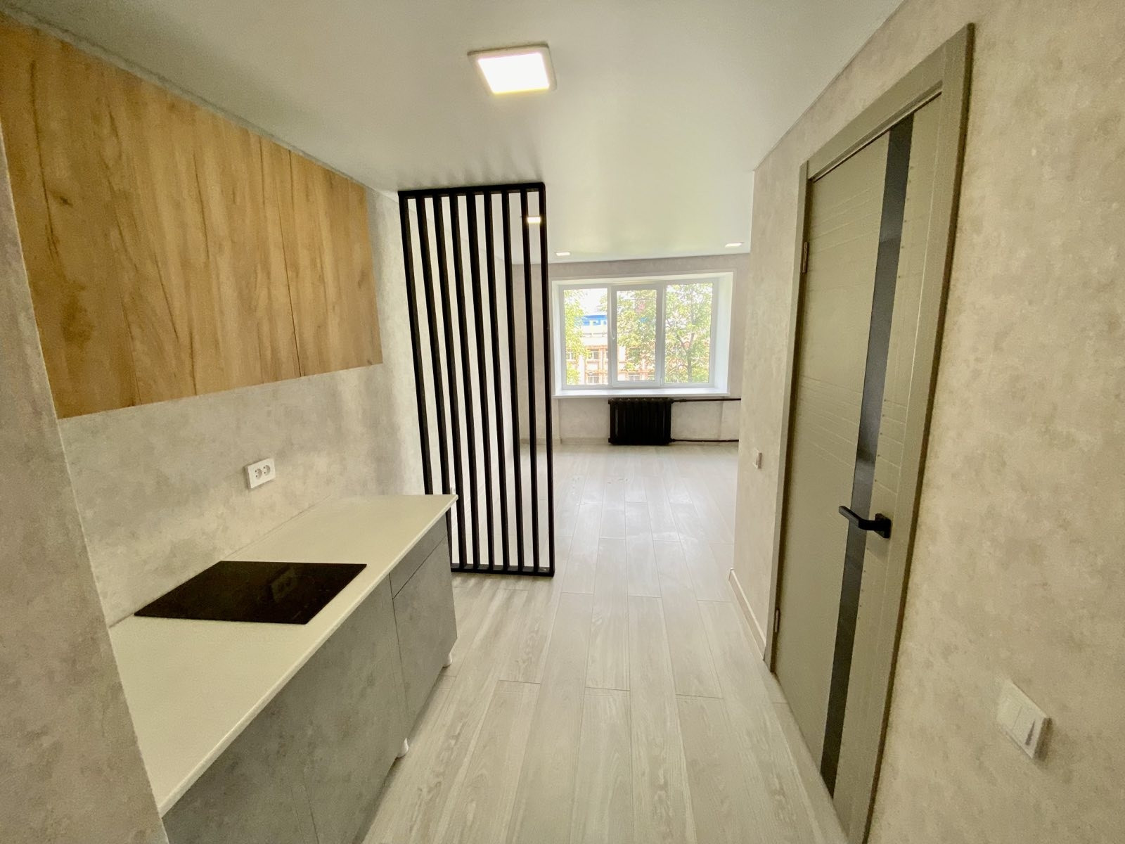 комната санузлом и душевой кабиной. остаётся кухонный гарнитур новый, сенсорная плита.