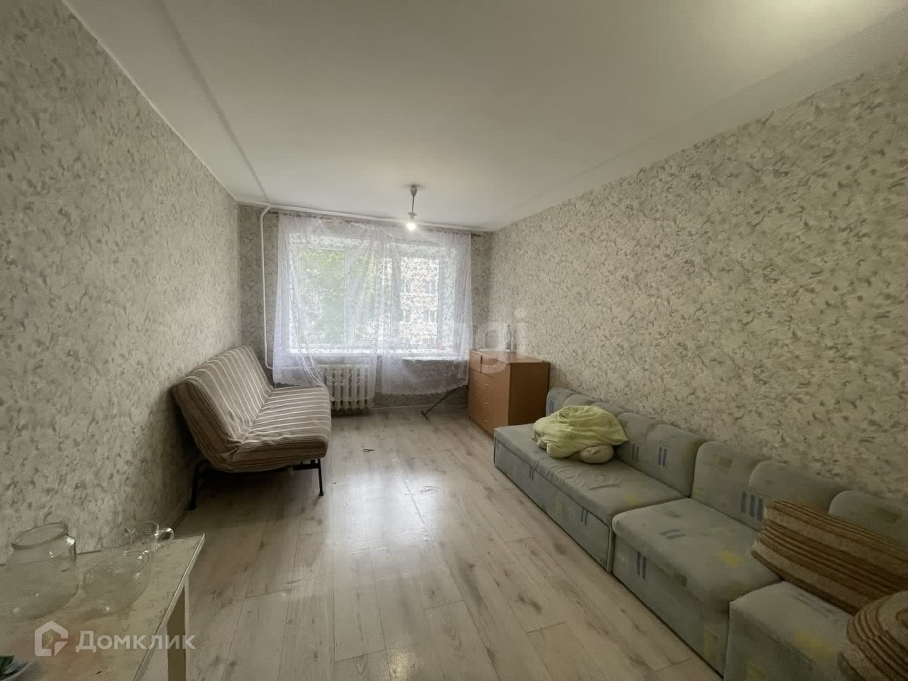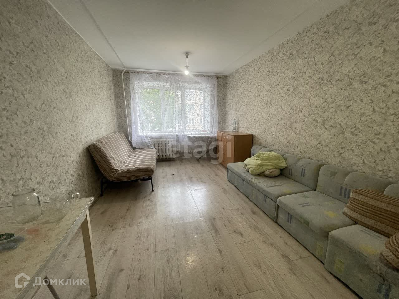 Сама комната в среднем состоянии, сделан косметический ремонт, пластиковое окно, на полу ламинат, есть встроенный шкаф, так же остается холодильник и два дивана, можно смело заехать и жить, так же сразу сдавать в аренду.