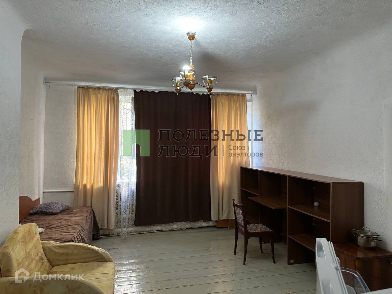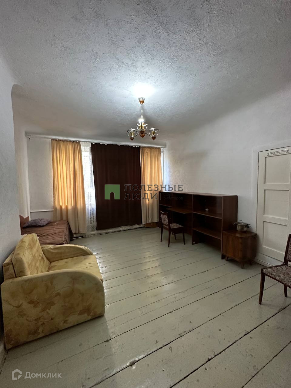 Комната в трехкомнатной квартире - очень просторная. Места общего пользования чистые. Приличные соседи только в одной комнате. Одна соседняя комната пустая, в которой много лет никто не живет.