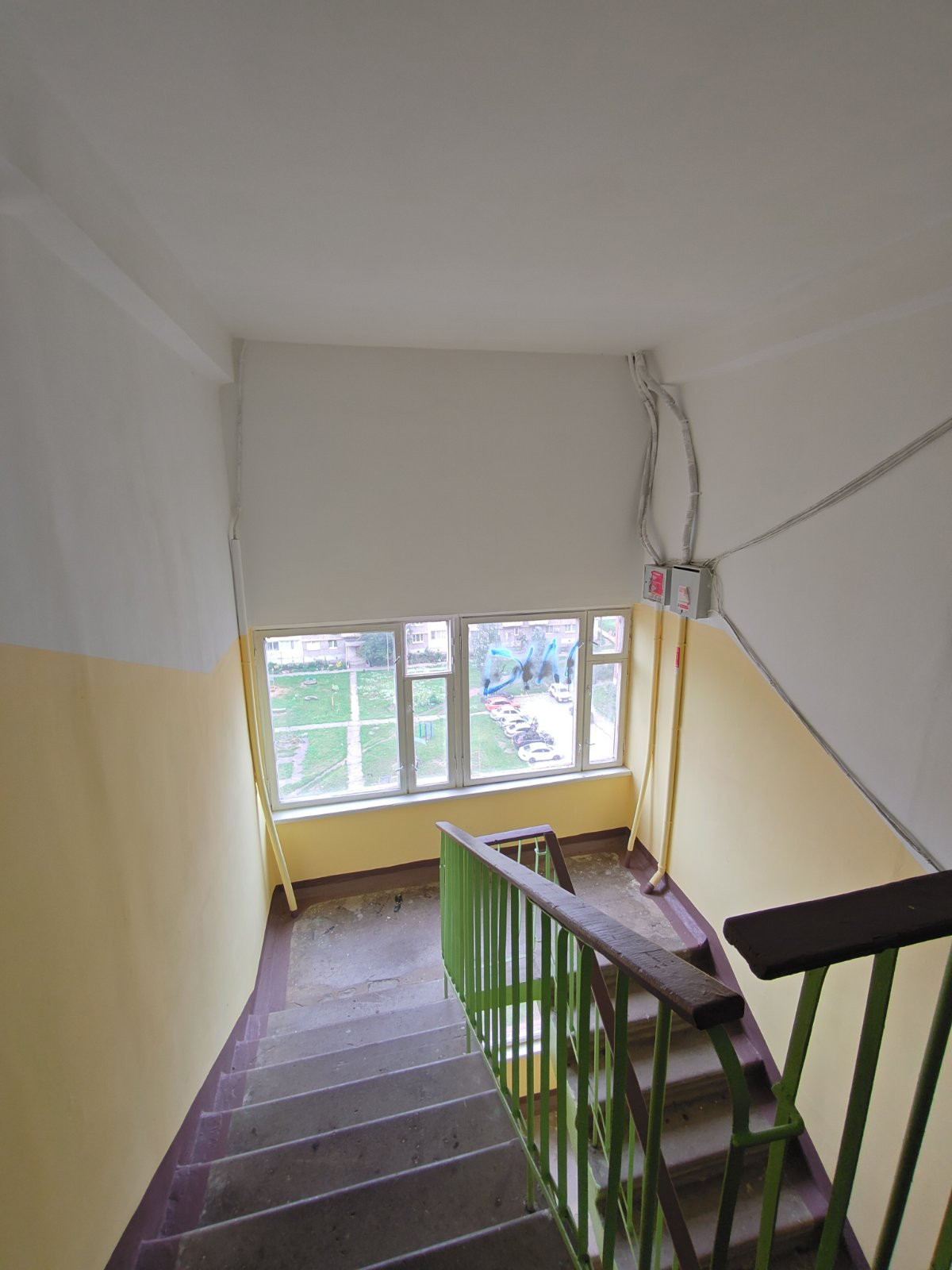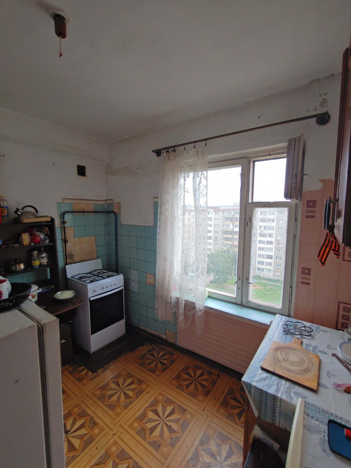 Пластиковые окна и трубы водоснабжения, стоят приборы учета.