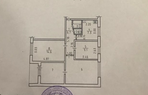 Жилая площадь 51.4 м2
