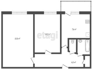 Общая площадь: 42.9 м2
