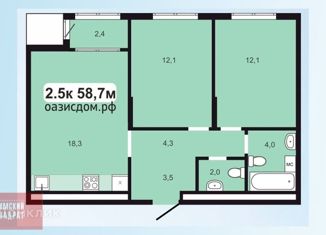 2-комнатная квартира на продажу, 58.7 м2, улица Телегина, 101