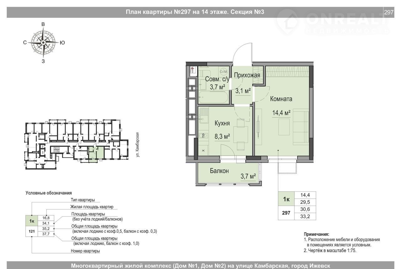 1-комнатная квартира, 30.6 м2, этаж 14 / 18, на продажу в Ижевске, Игринская улица, 12