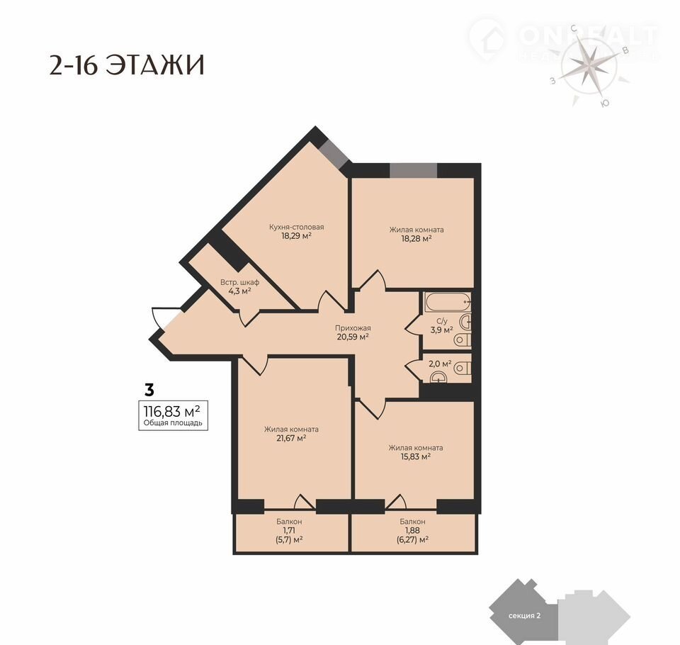 Общая площадь 116.8 м2