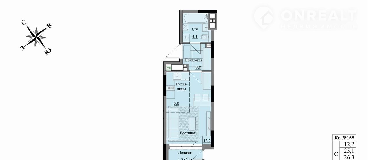 Общая площадь 26.3 м2
