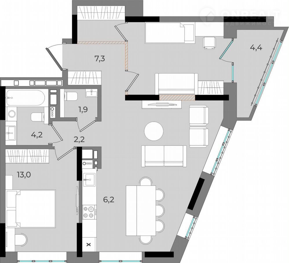 Количество комнат свободная планировка