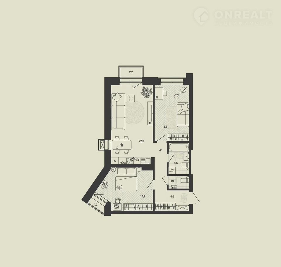 Лот для тех, кто ценит сбалансированное пространство. Пространство легко подстраивается под ритм жизни пары или молодой семьи. Окна с видом на пруд наполняют интерьер мягким светом и ощущением покоя.