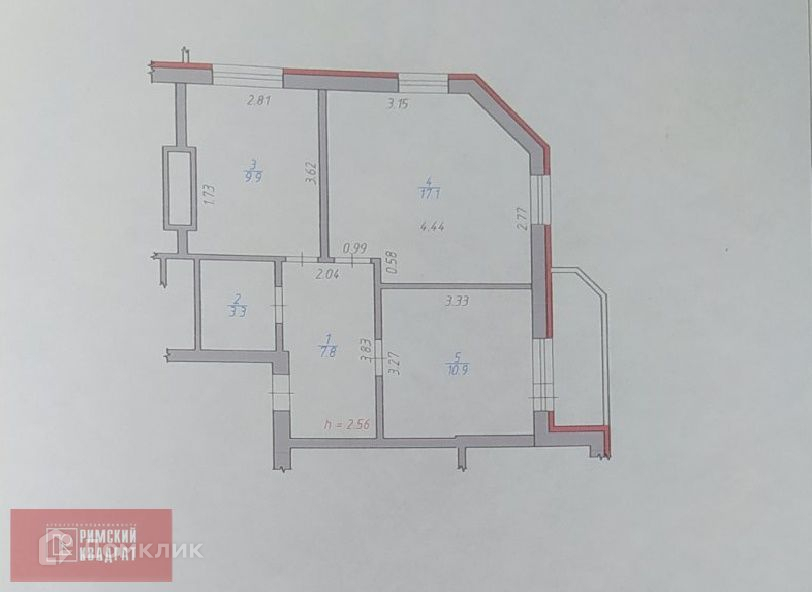 Высота потолков 2.56 м