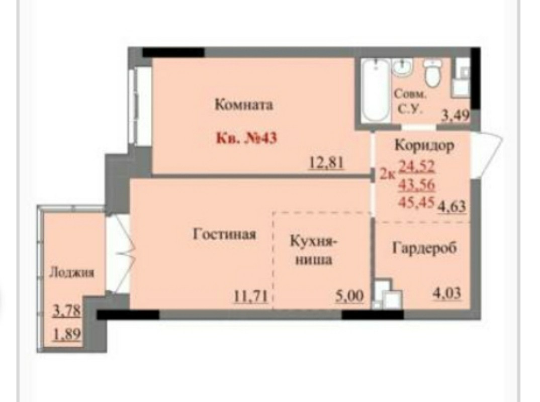 Общая площадь 45.45 м2