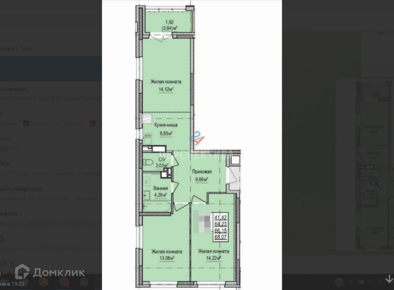 Общая площадь 66.15 м2