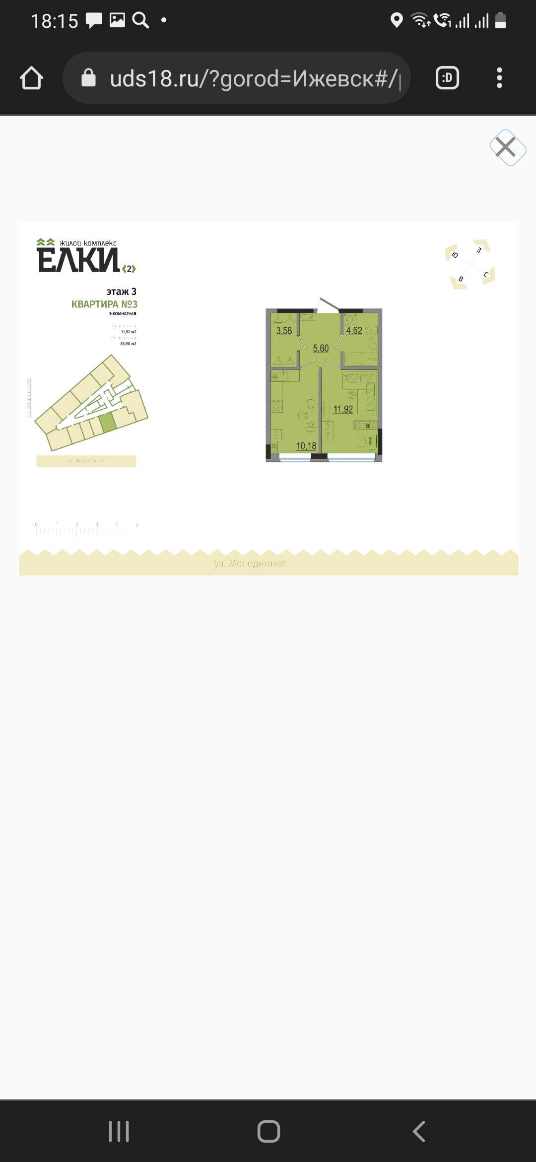 1-комнатная квартира, 36.1 м2, этаж 3 / 17, на продажу в Ижевске, проспект Конструктора М.Т. Калашникова, 11