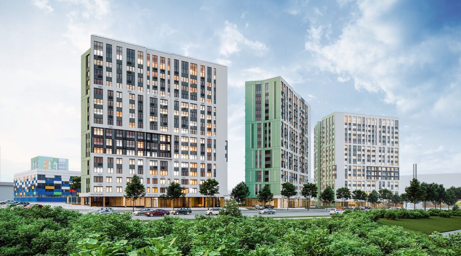 Дом в центре Устиновского района на ул. Молодежной. Три 17-этажных дома будут объединены общим дворовым пространством с детскими площадками и местами для "тихого" отдыха. Хвойный лес для прогулок рядом с домом. Дойти пешком:2 минуты - паркинг, магазины, детская площадка, парк, остановка "ТВЦ Метеор", спортивный комплекс "Созвездие";5 минут - ледовый дворец Молодёжный, остановка "Улица Труда", школа №49, лицей №41;7 минут - детский сад № 231, детский сад № 226, гипермаркет Магнит и Азбука ремонта.