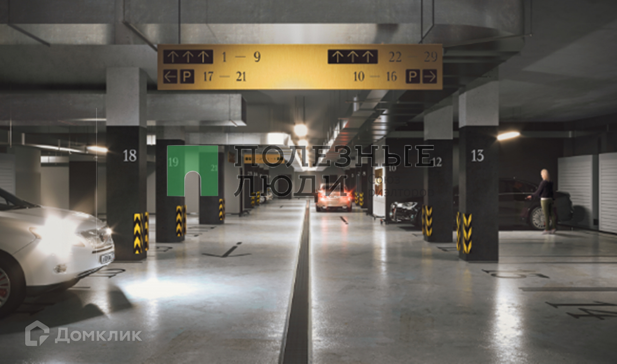 Паркинг занимает всю площадь под домом и территорией благоустройства.