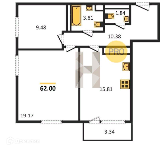 Общая площадь 63 м2