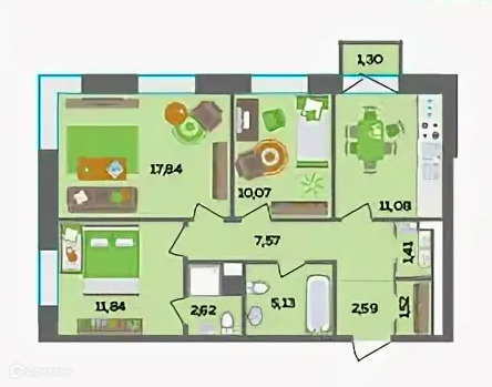 Общая площадь 74 м2