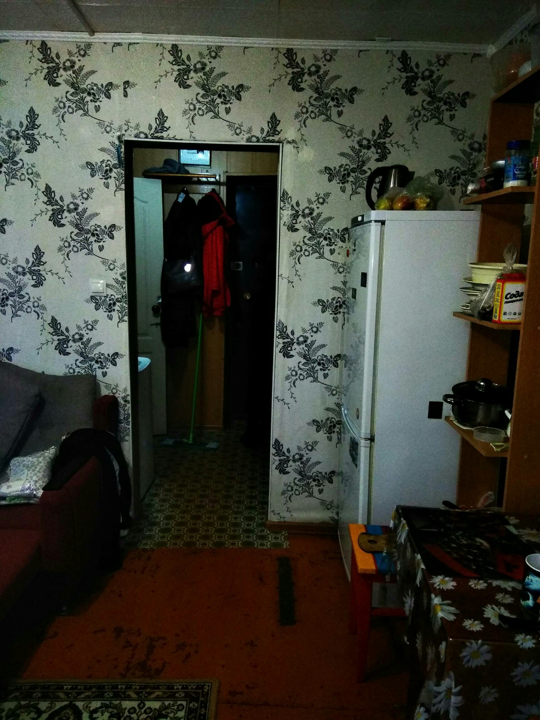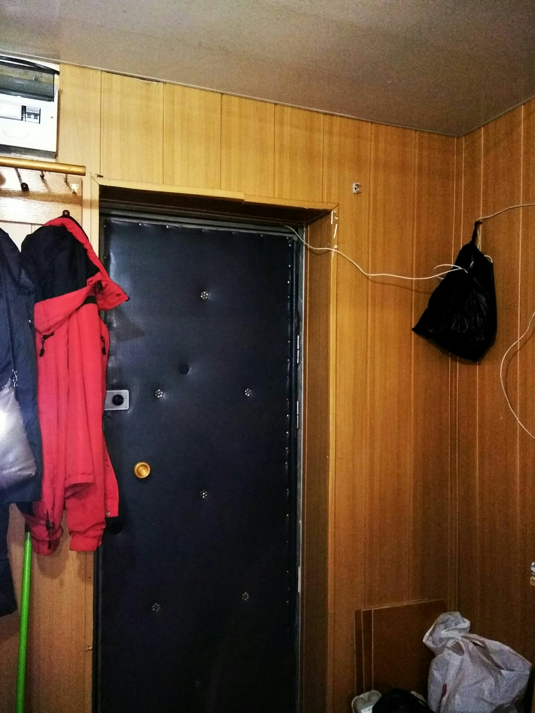 На окнах решетки. Окна пластиковые.  В прихожей и в санузле панели.