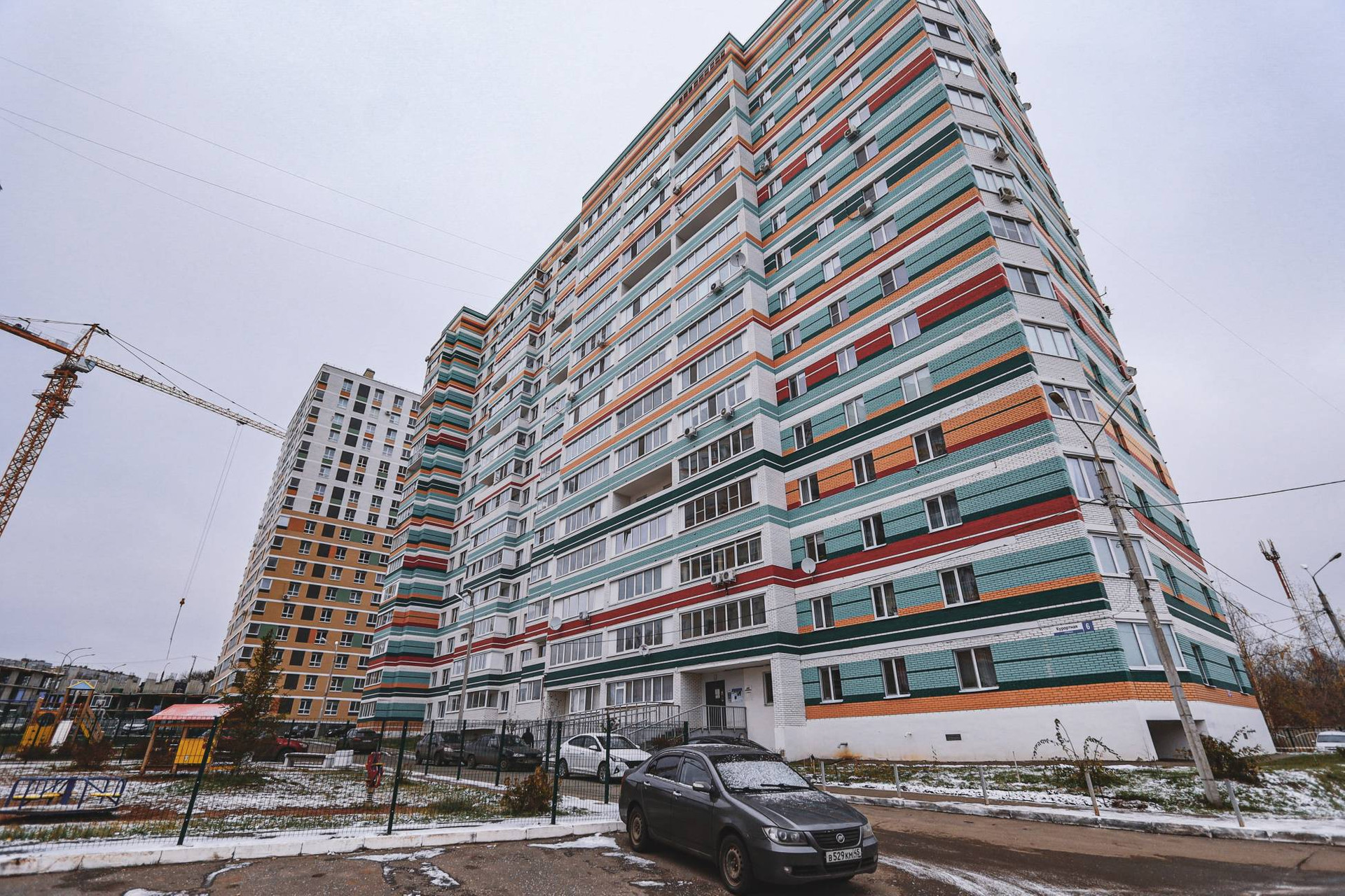 Во дворе организованы спортивная и детская площадка.