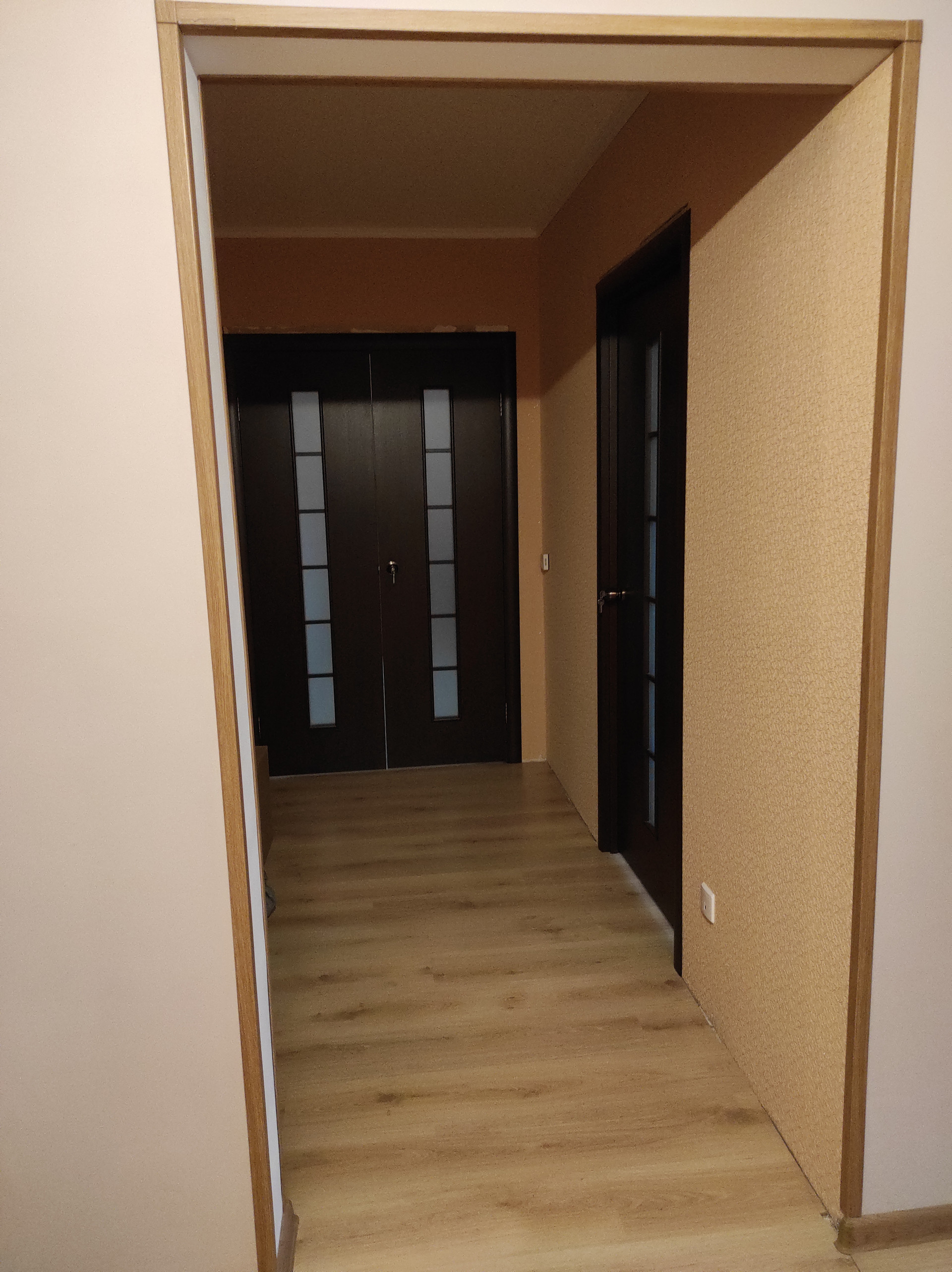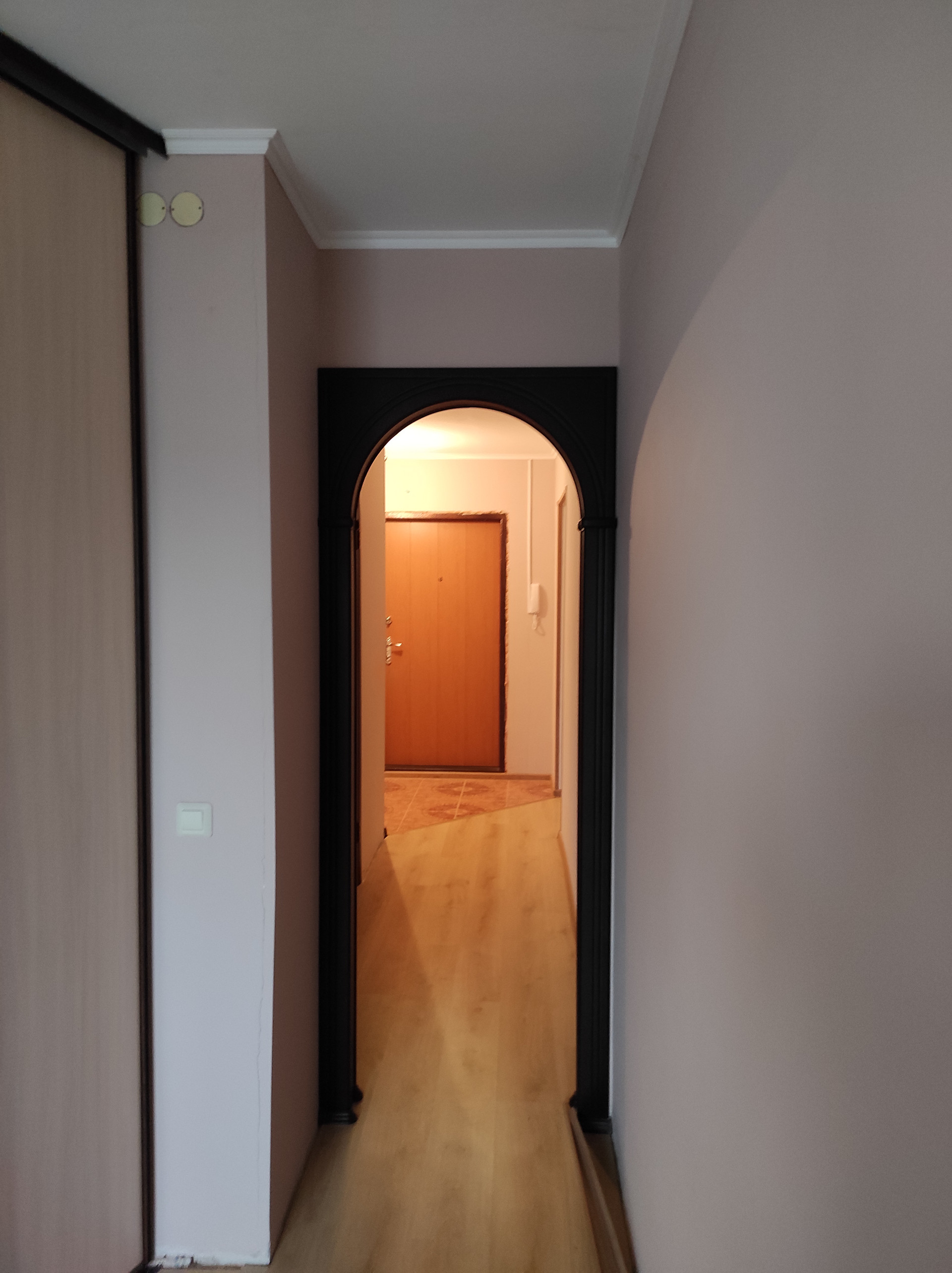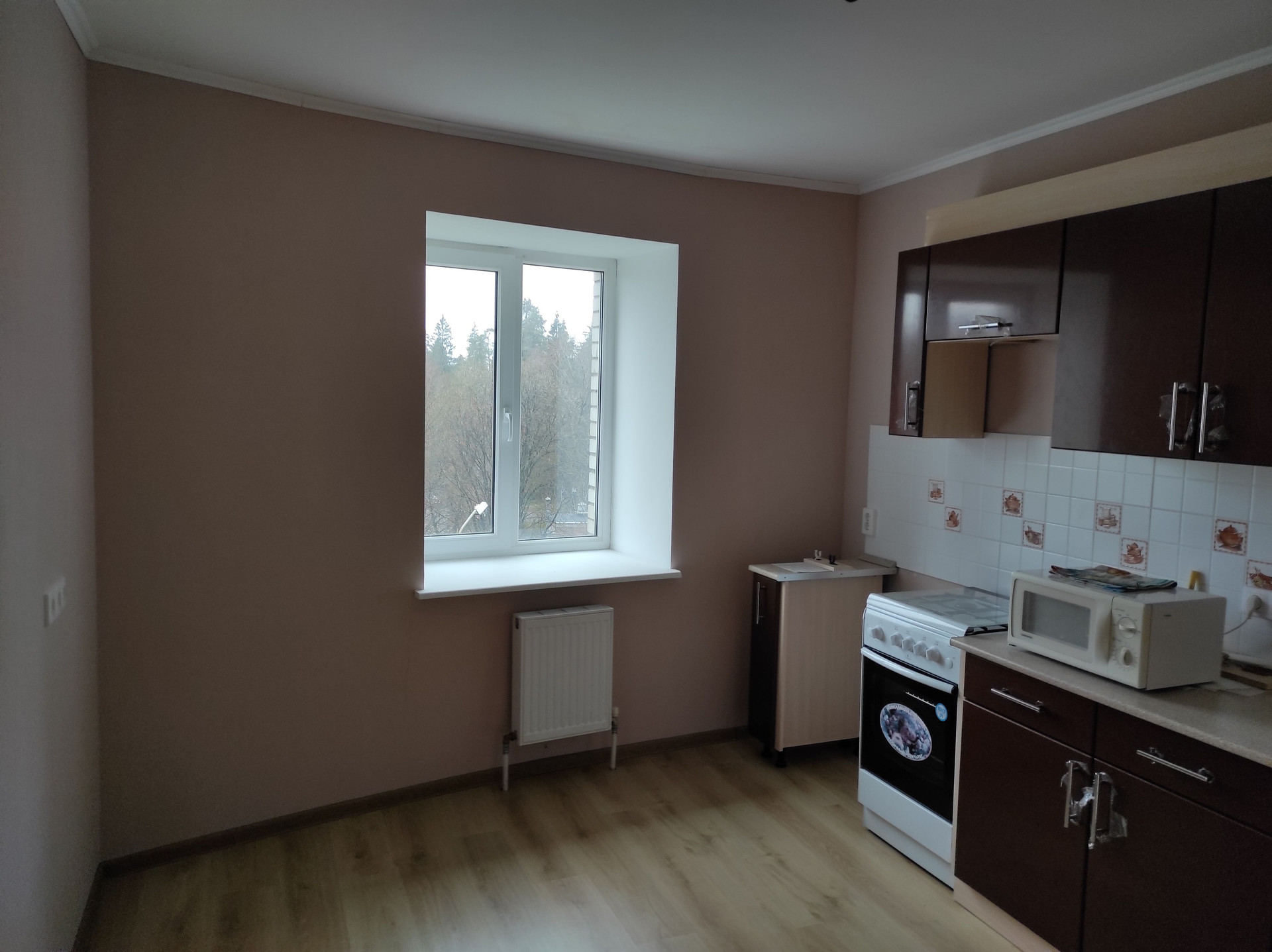 На полу качественный ламинат и плитка, с теплым полом в ванной и туалете.