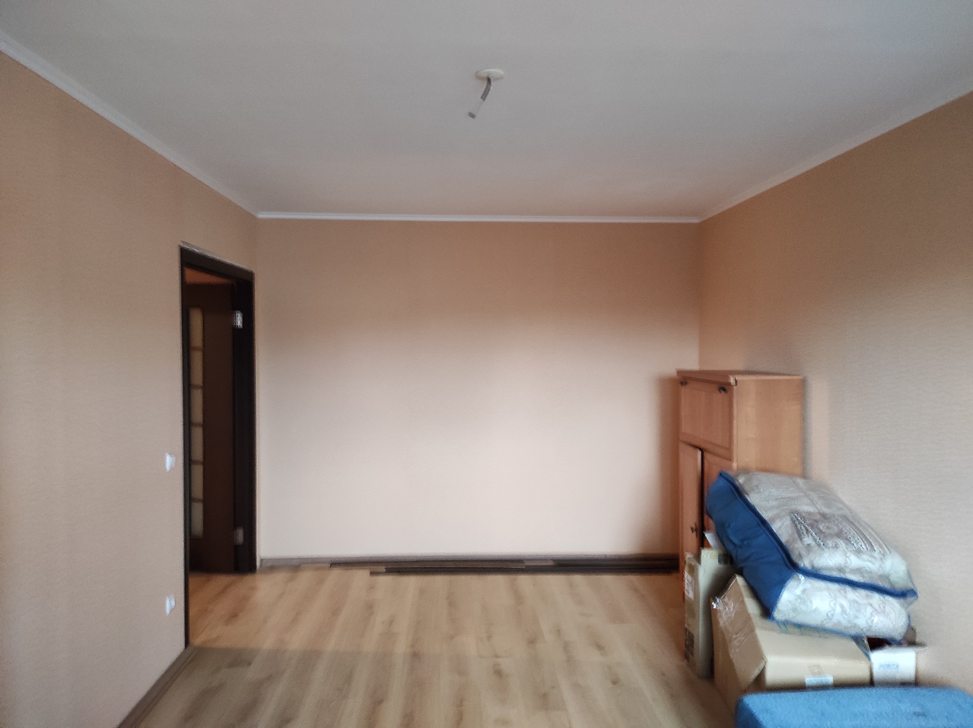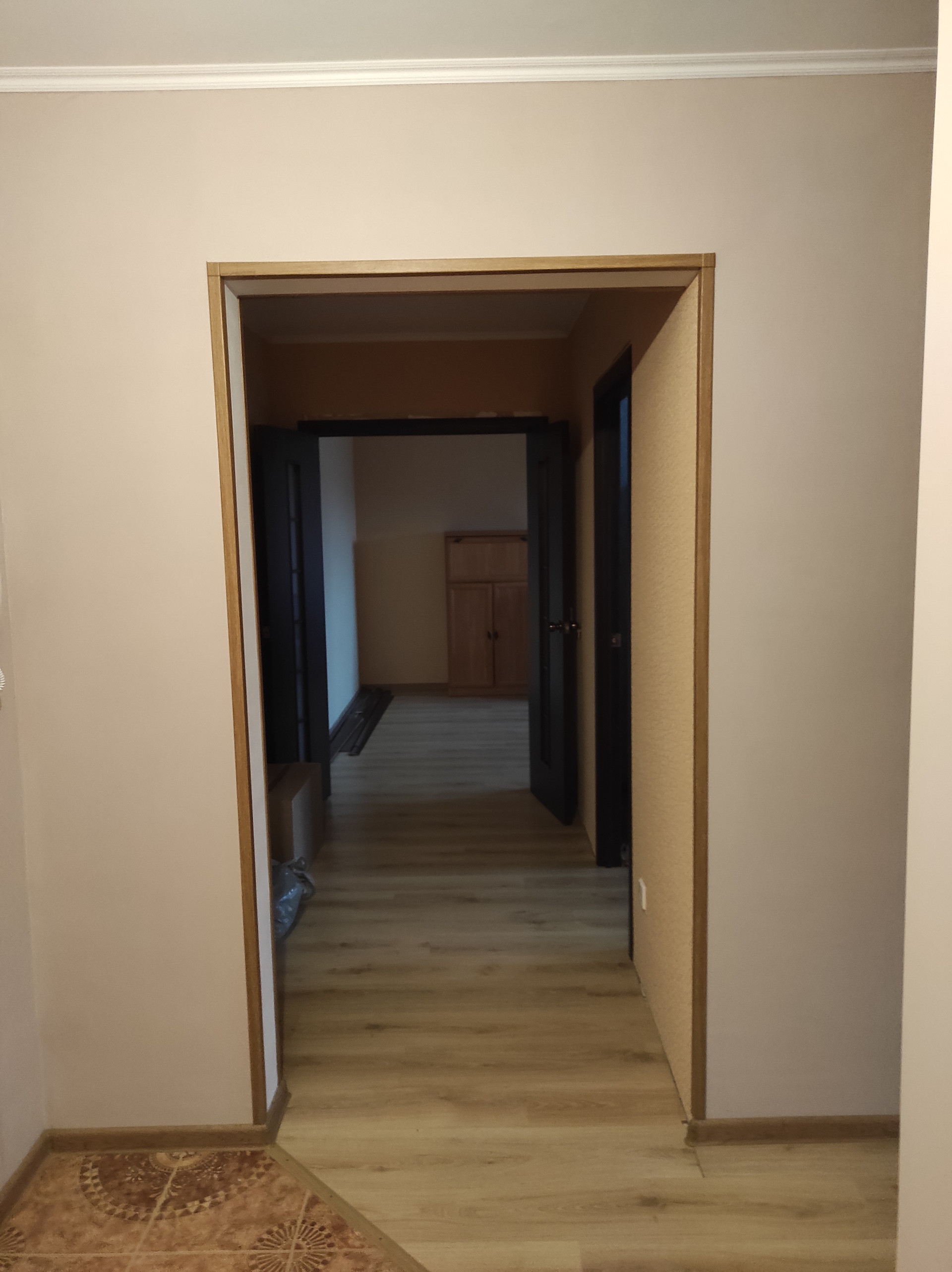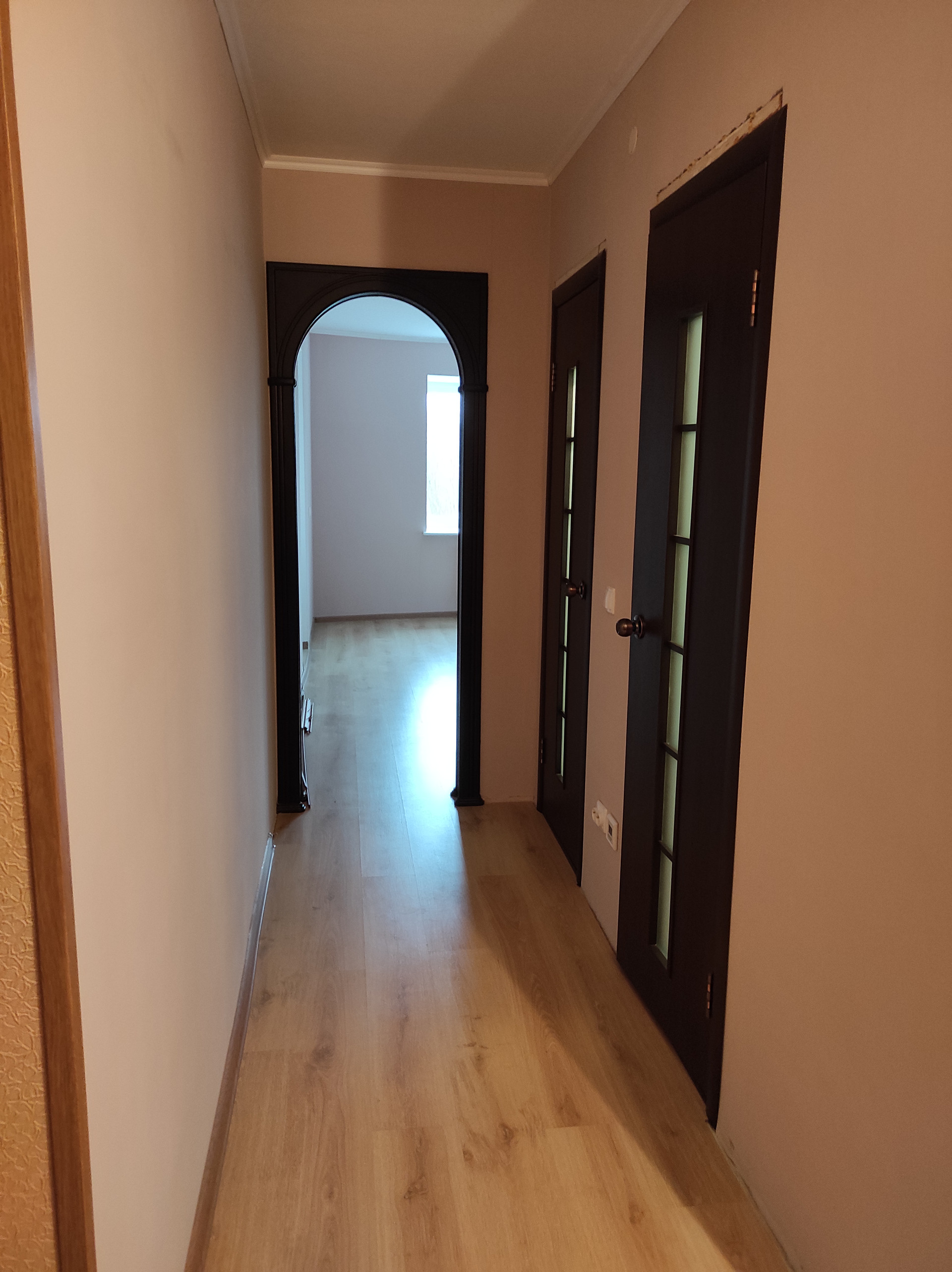 На полу качественный ламинат и плитка, с теплым полом в ванной и туалете.