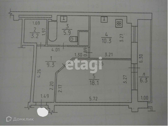 Общая площадь 46.6 м2