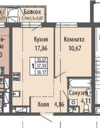 Общая площадь 38.17 м2