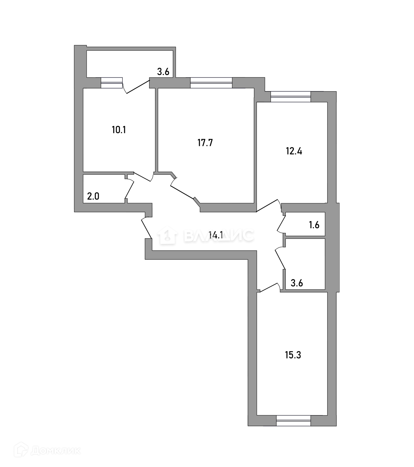 Жилая площадь 45.4 м2
