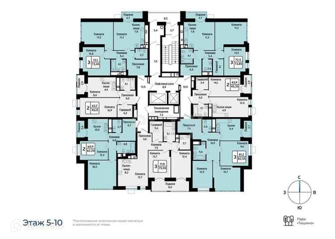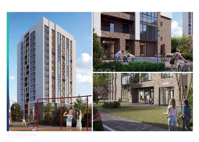 Дом одноподъездный, высотой в 15 этажей, (квартира находится на 9 этаже), цокольный этаж - коммерческие помещения, выходящие на парковку. Второй выход из подъезда - во двор без машин. Двор в ЖК «Плюс один» - это настоящий парк приключений с различными зонами по интересам. Задний двор дома выходит в парк Тишино.