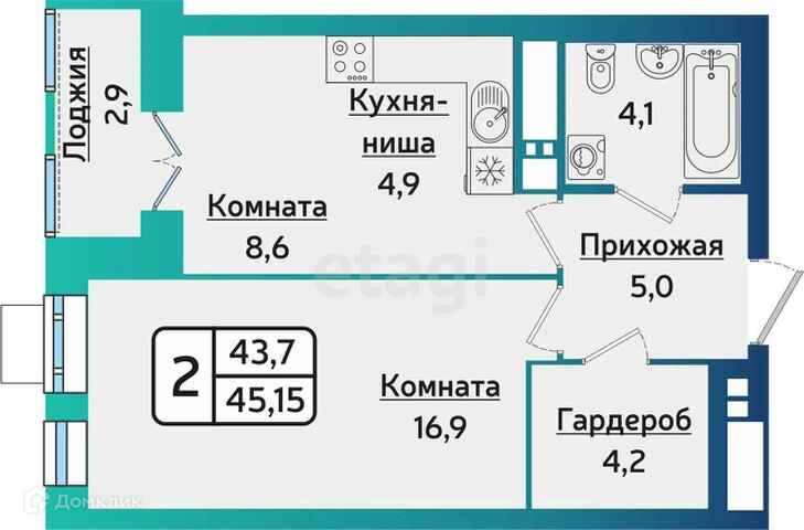 Общая площадь 45,15 кв.м.